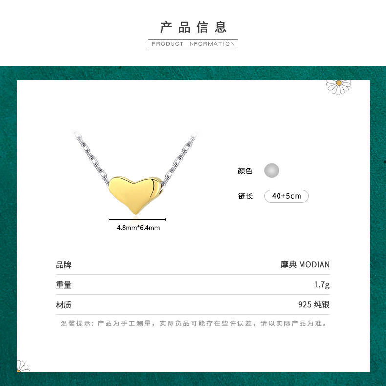 Modian 925纯银项链女士轻奢爱心形锁骨链纯银送女朋友生日礼物