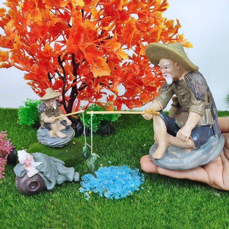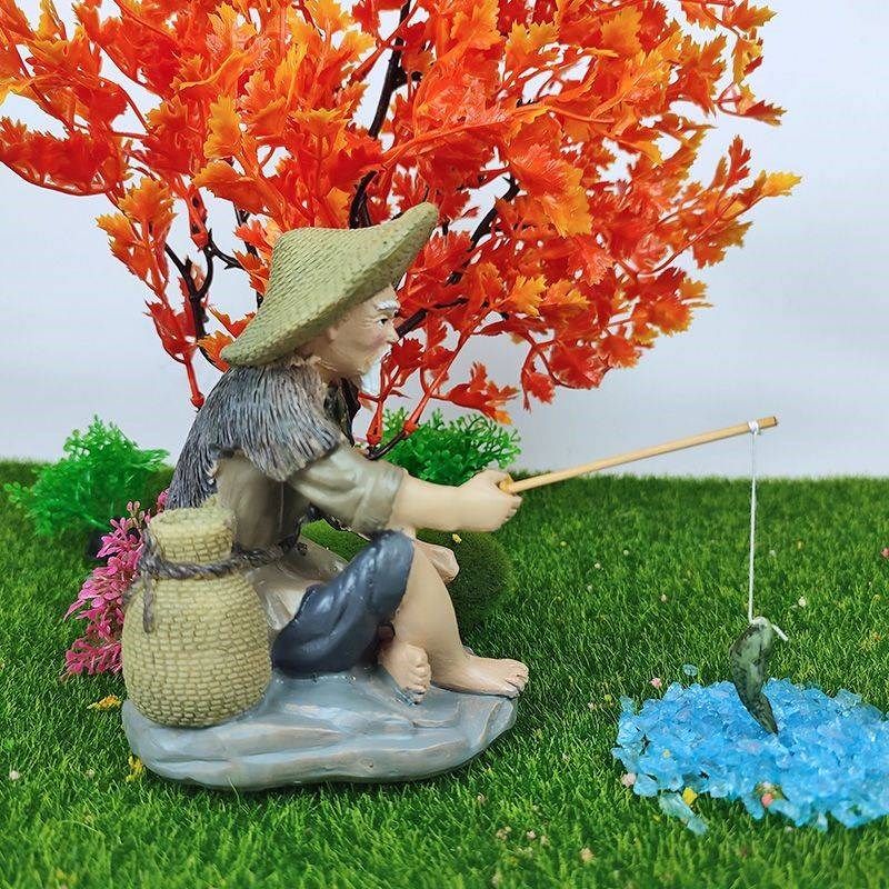 大号姜太公钓鱼翁树脂工艺品鱼缸摆件假山吸水石盆景造景装饰摆件