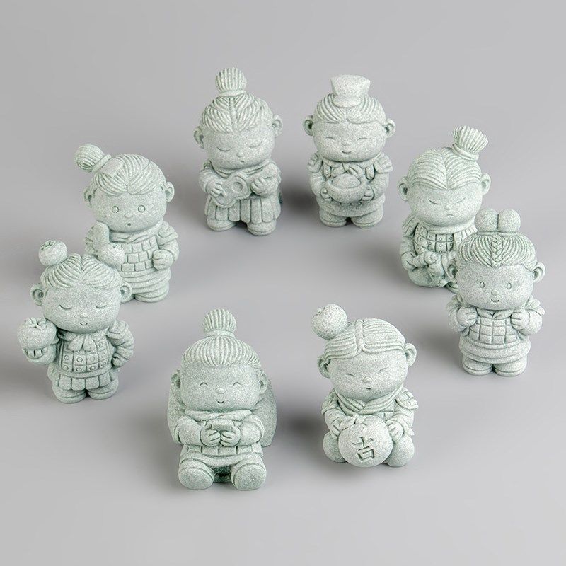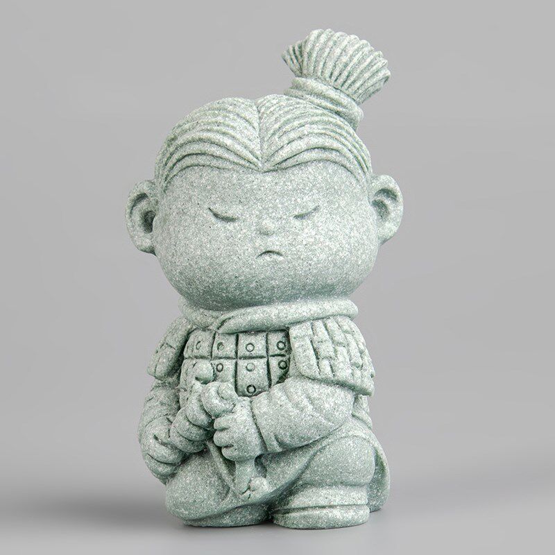 青砂石萌趣兵马俑茶宠招财家居办公送礼鱼缸造景桌面装饰中式摆件