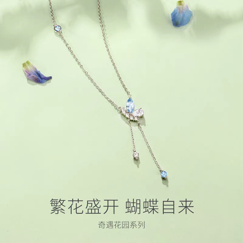 999纯银奇遇花园蝶之舞流苏项链小众高级感闺蜜生日礼物送女友