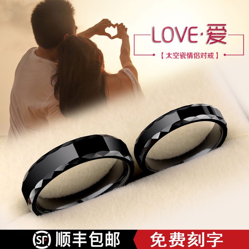 时尚个性情侣戒指韩版一对戒男女黑色韩版食指尾戒刻字情人节礼物
