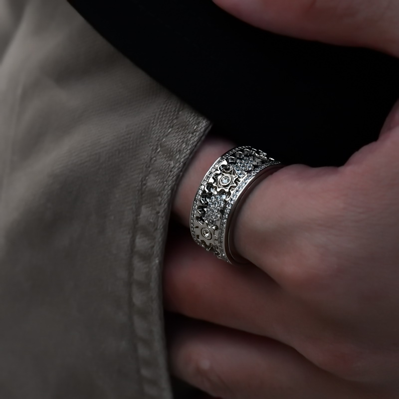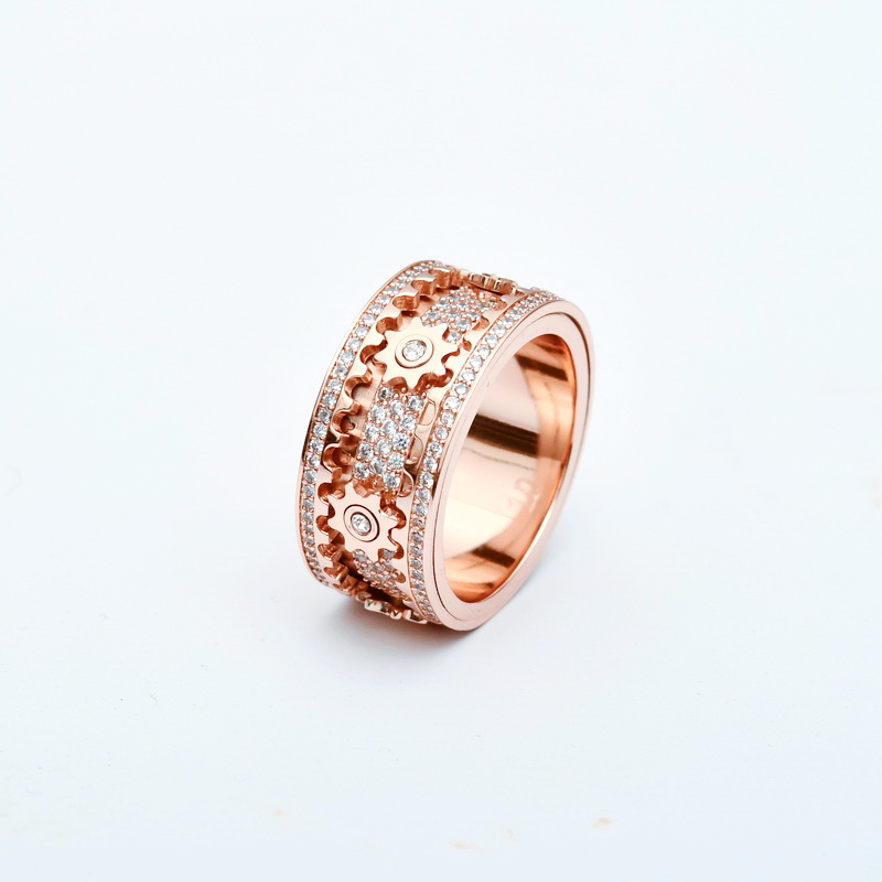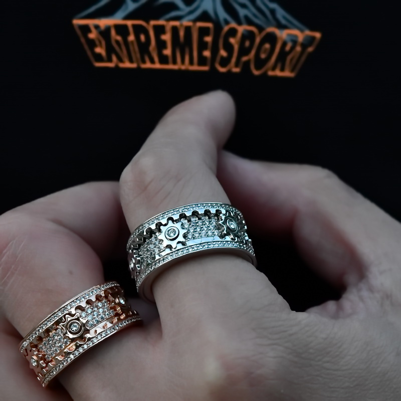 抖音同款网红齿轮满钻戒指转动钛钢机械个性男女情侣指环潮流时尚