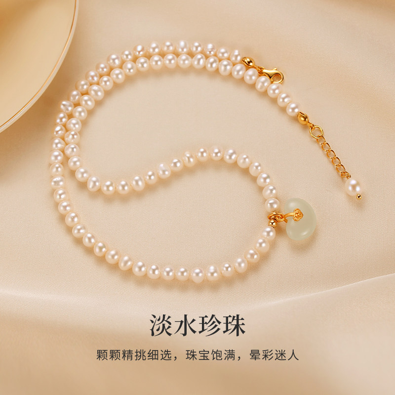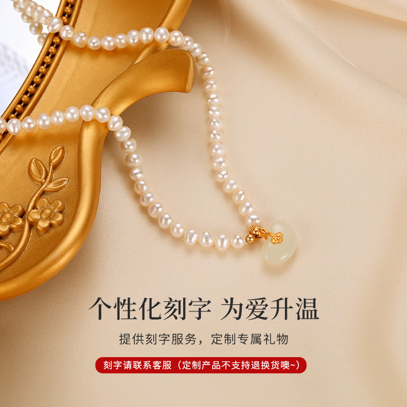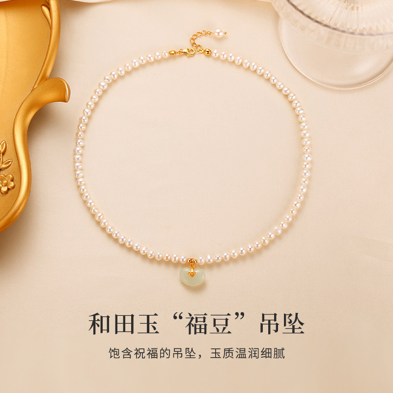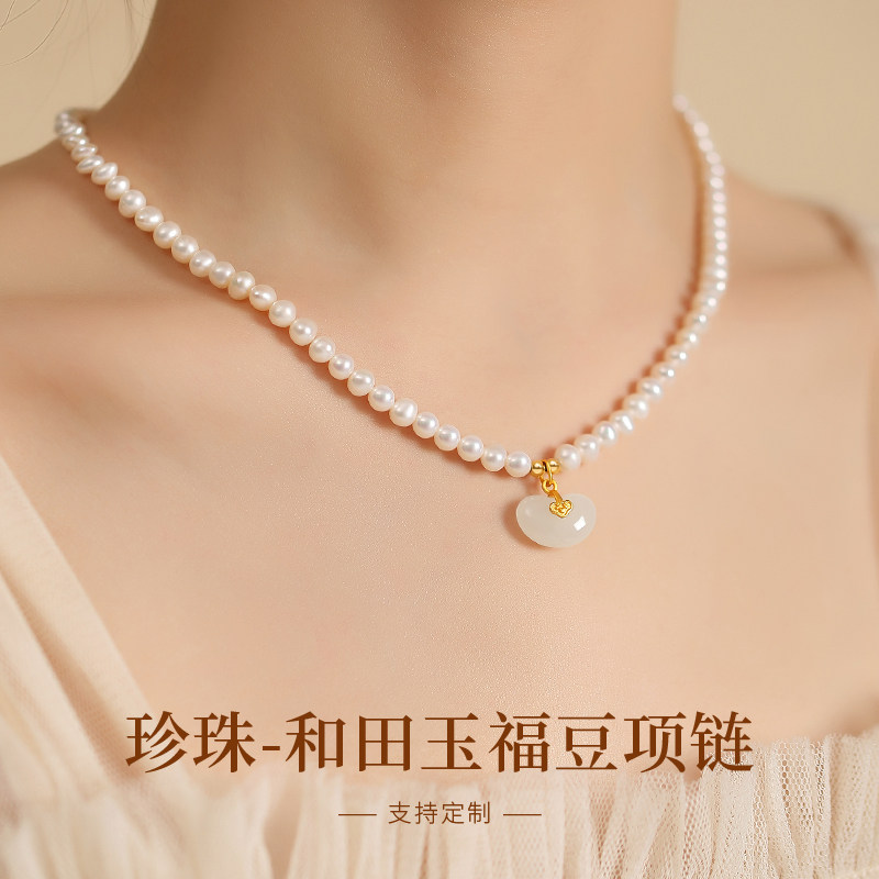 珍珠项链妈妈款女天然和田玉福豆吊坠淡水珠子串链锁骨链定制刻字