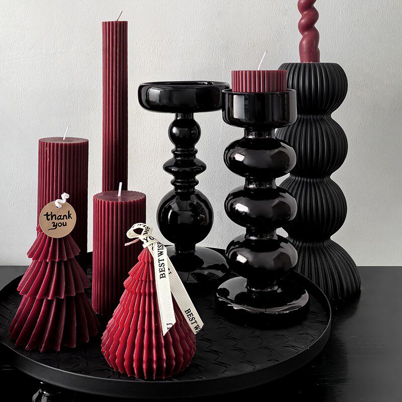态生活 复古风黑色烛台客厅餐桌过年喜庆氛围感 装饰蜡烛烛台摆件