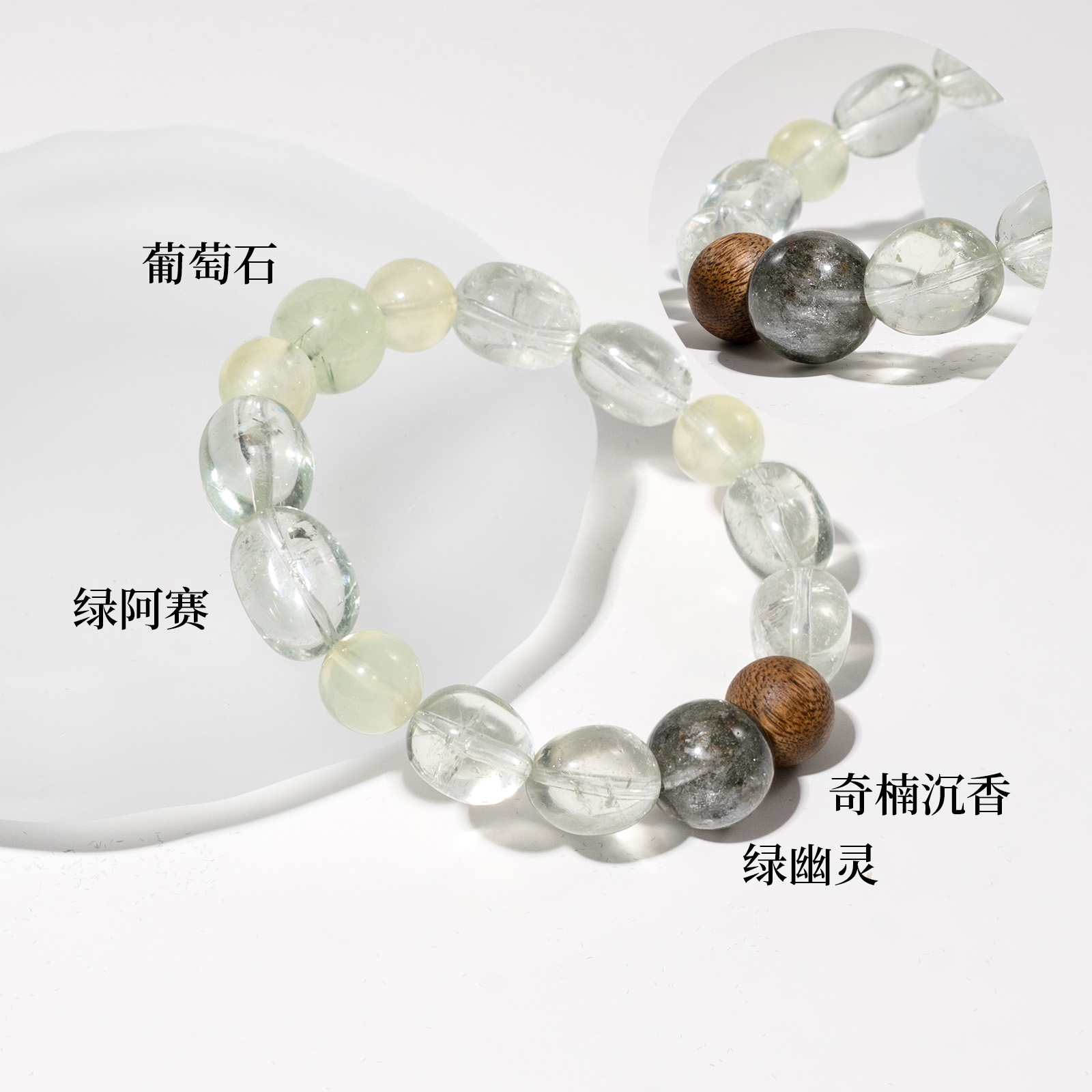 【生机旺财】绿阿赛葡萄石奇楠手串范李李缺木招财增运女水晶手链