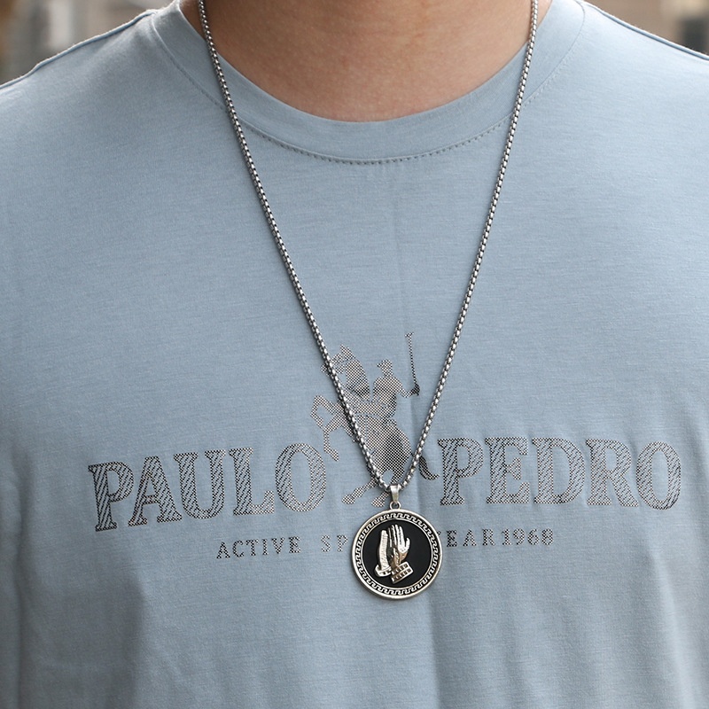 潮牌祈祷之手圆牌项链情侣时尚感恩幸运吊坠百搭合金项饰吊坠