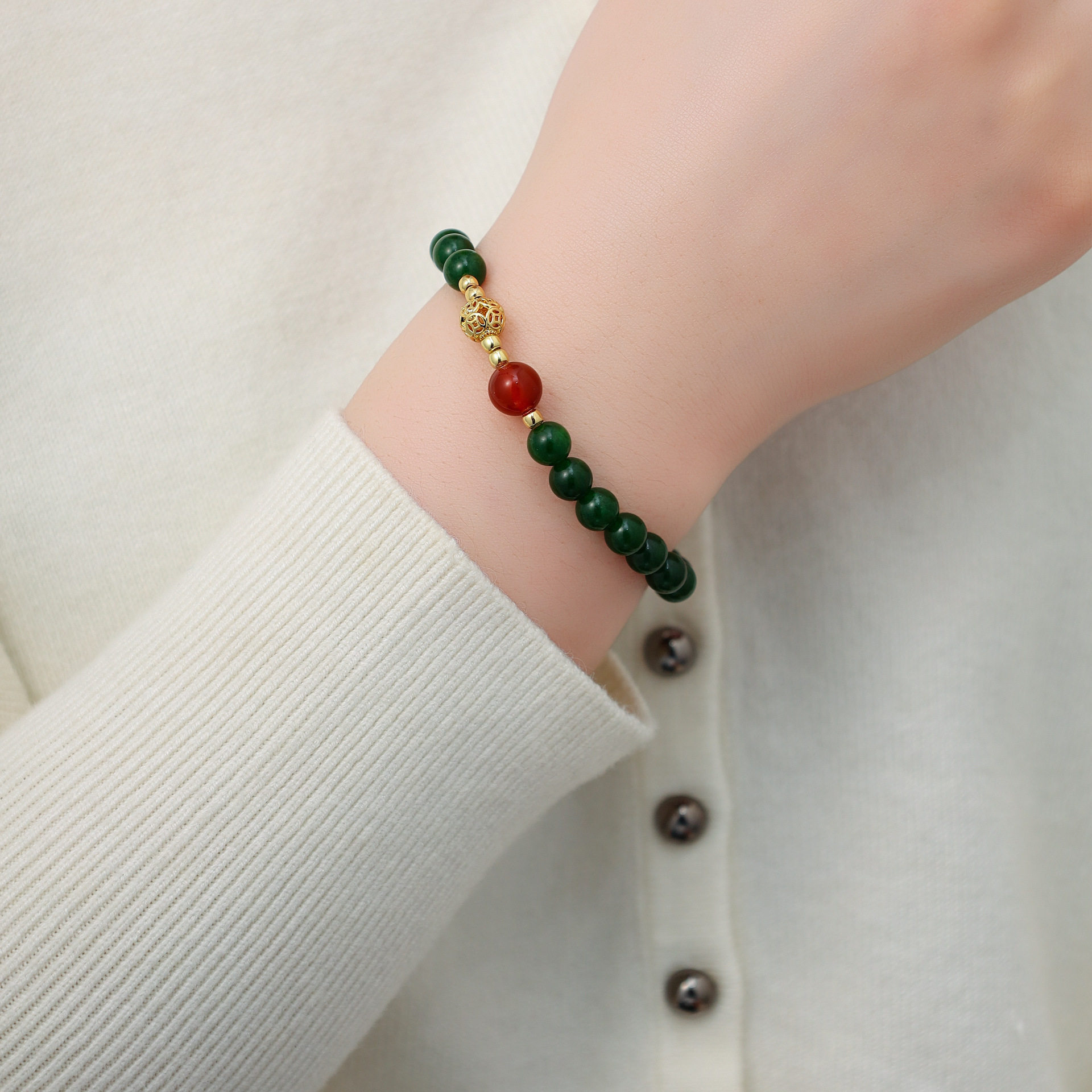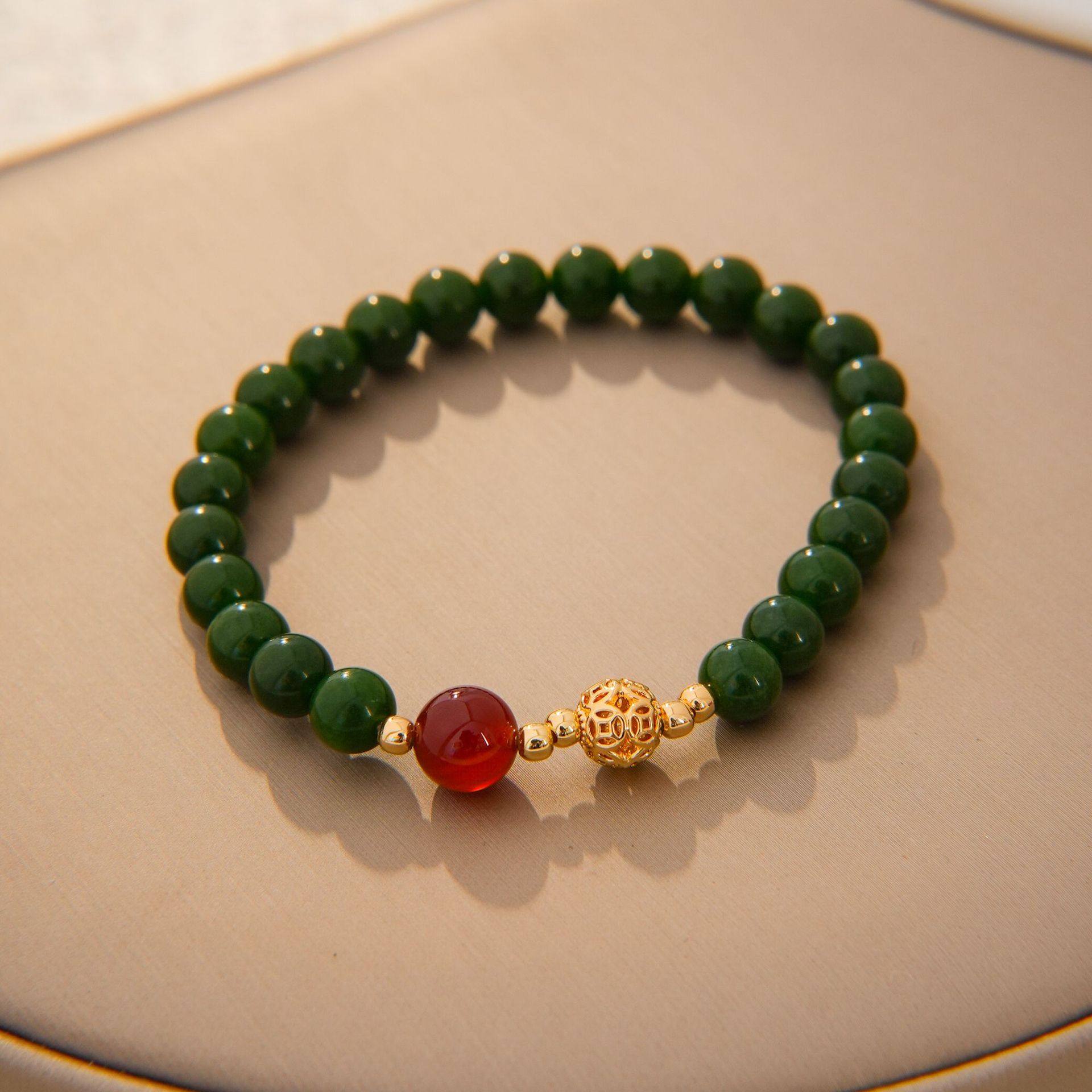 新中式国风绿色手串女轻奢小众设计高级感绿玉石串珠手链百搭手饰