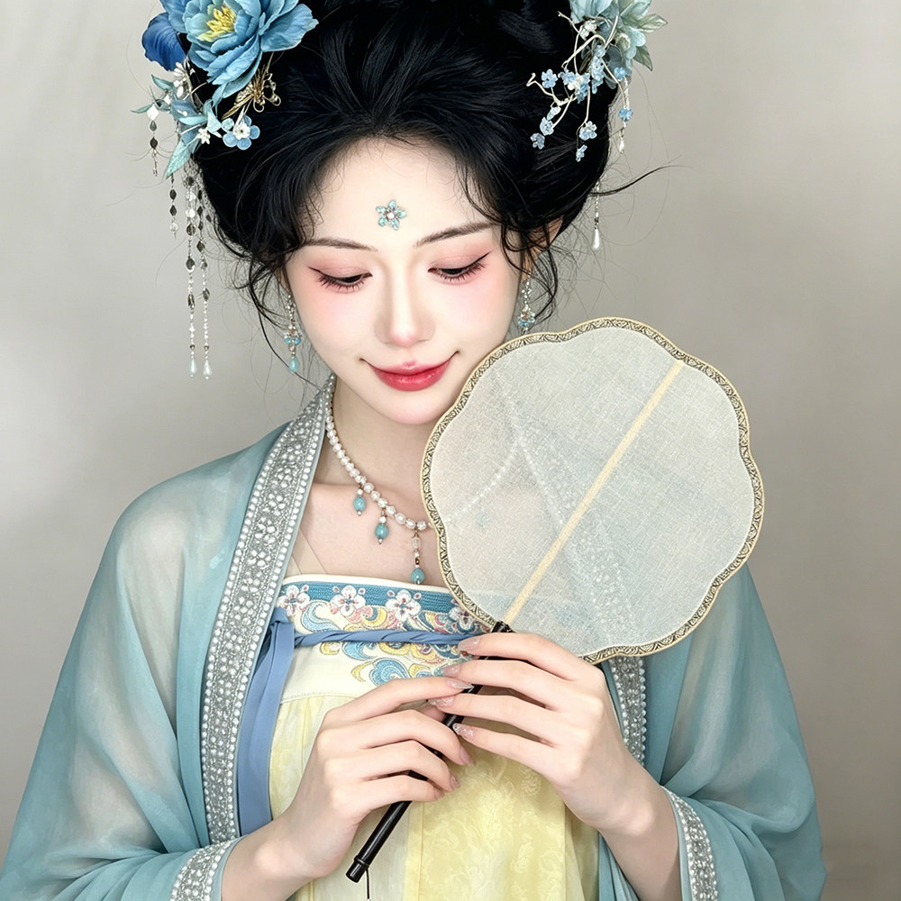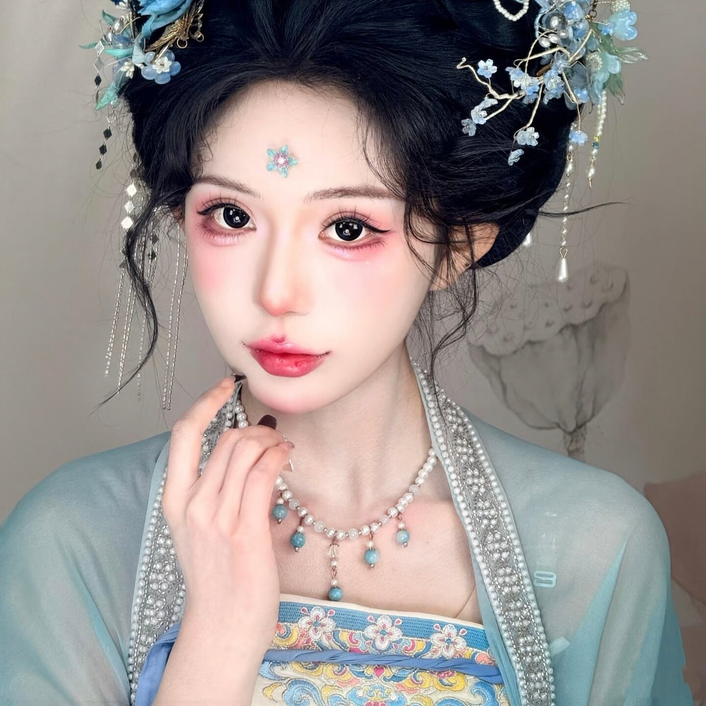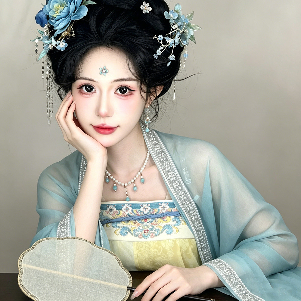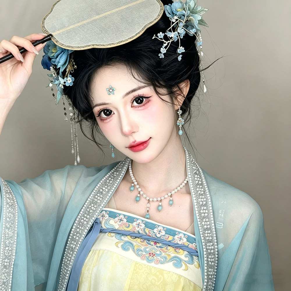 古风仿珍珠串珠流苏项链女软璎珞蓝色锁骨链新中式汉服坦领颈链