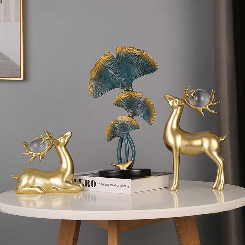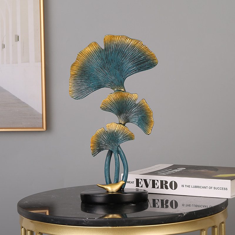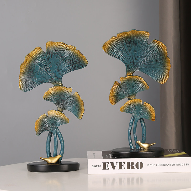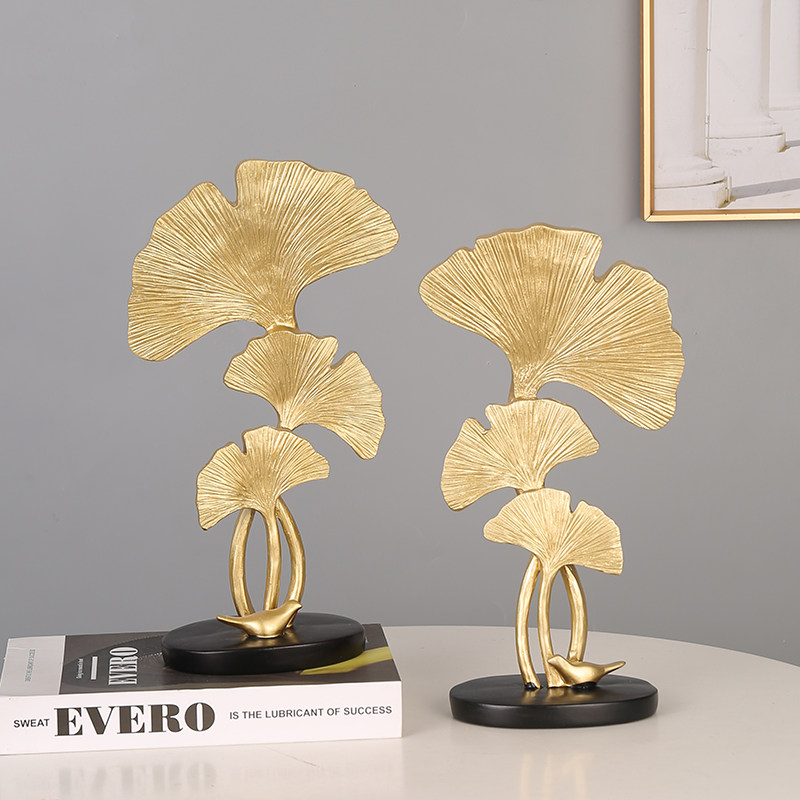 速发新中式银杏叶摆件轻奢高书客厅电置柜装饰品书房档架布视树脂