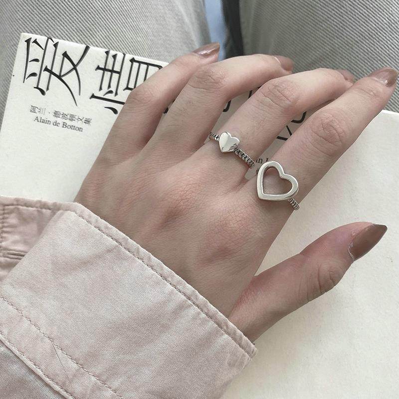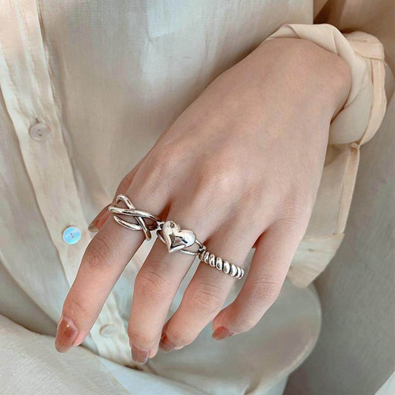Fashion rendy Heart Silver Color Punk Rings Set for Women Gi