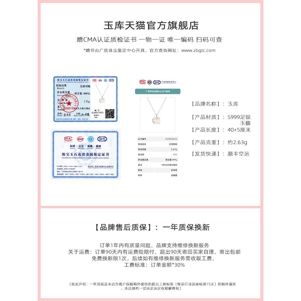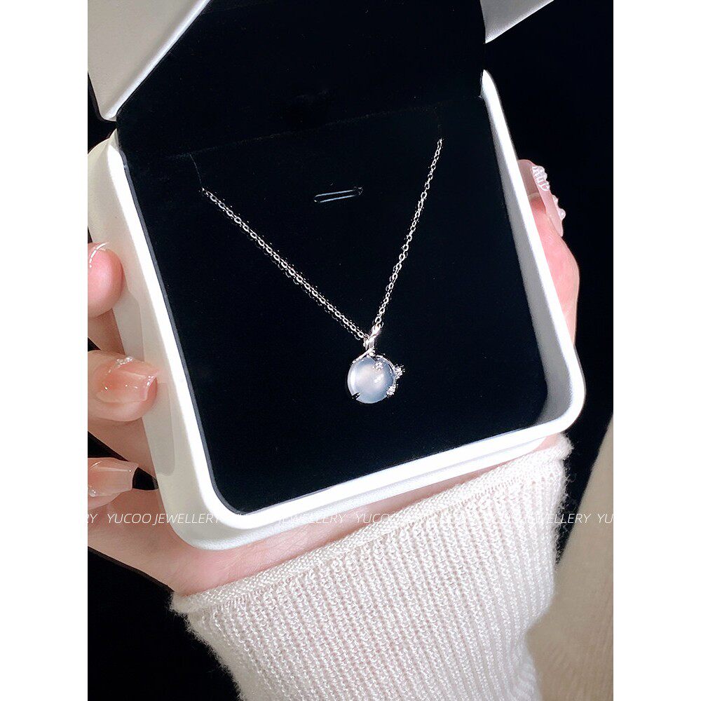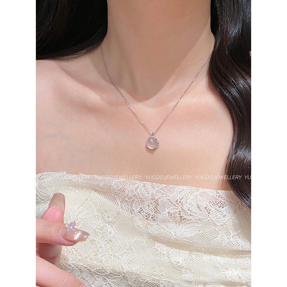 Yujiku yuoo[梅花]白色玉髓S999纯银项炼女士轻奢小龛女孩生日礼