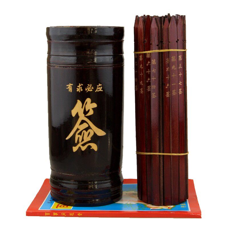 天然竹签桶手工摇签筒100签观音签抽签筒红色白色竹桶求签桶道具