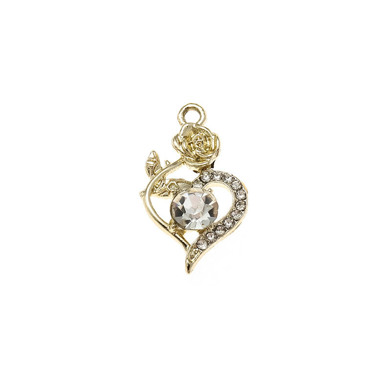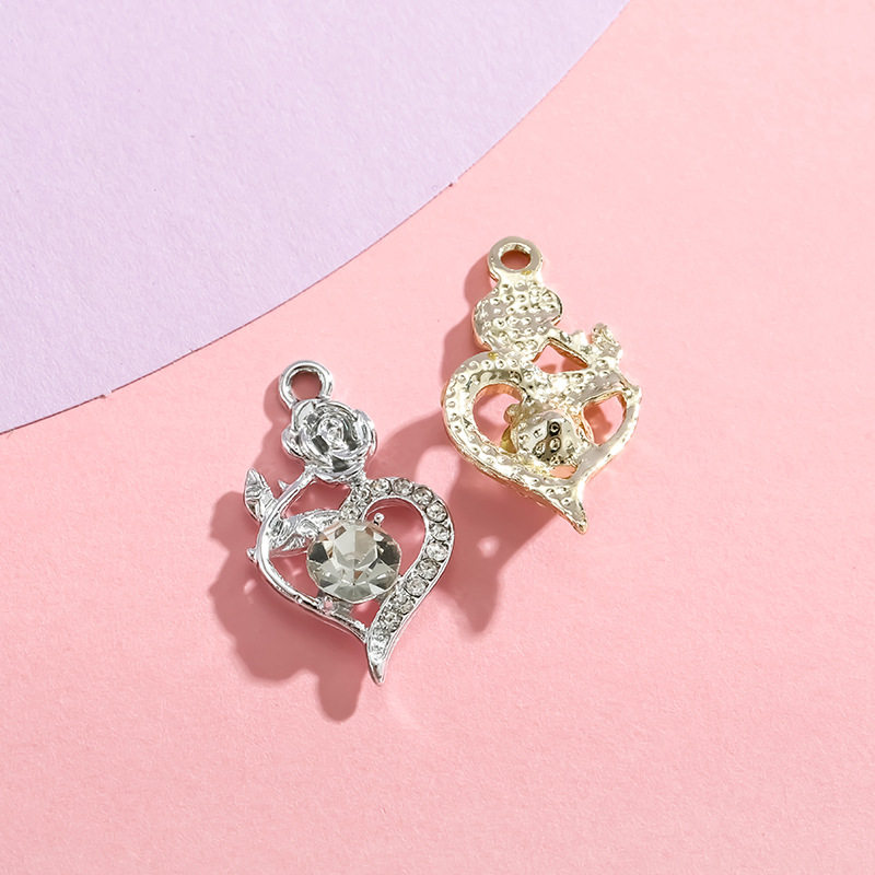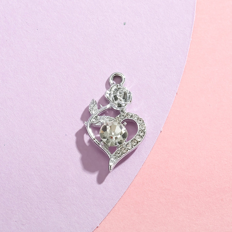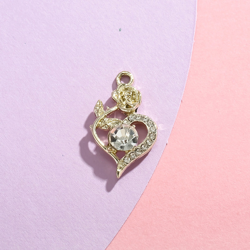 玫瑰爱心挂件简约镶钻合金电镀吊坠饰品配件diy配饰手链服饰材料