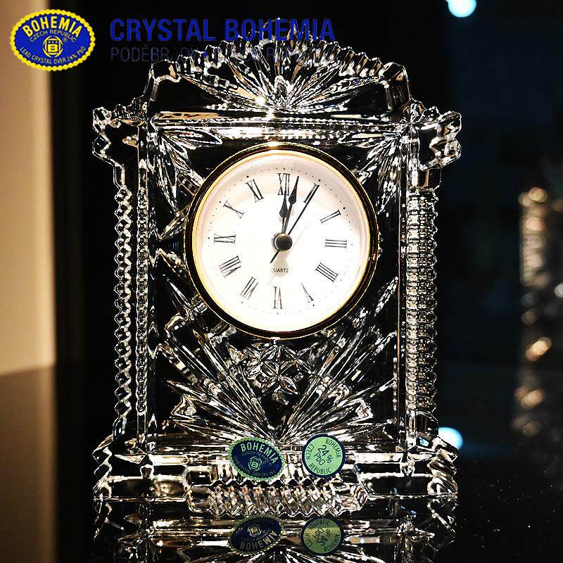 捷克进口BOHEMIA水晶玻璃欧式小座钟小时钟表摆件家居装饰钟表台