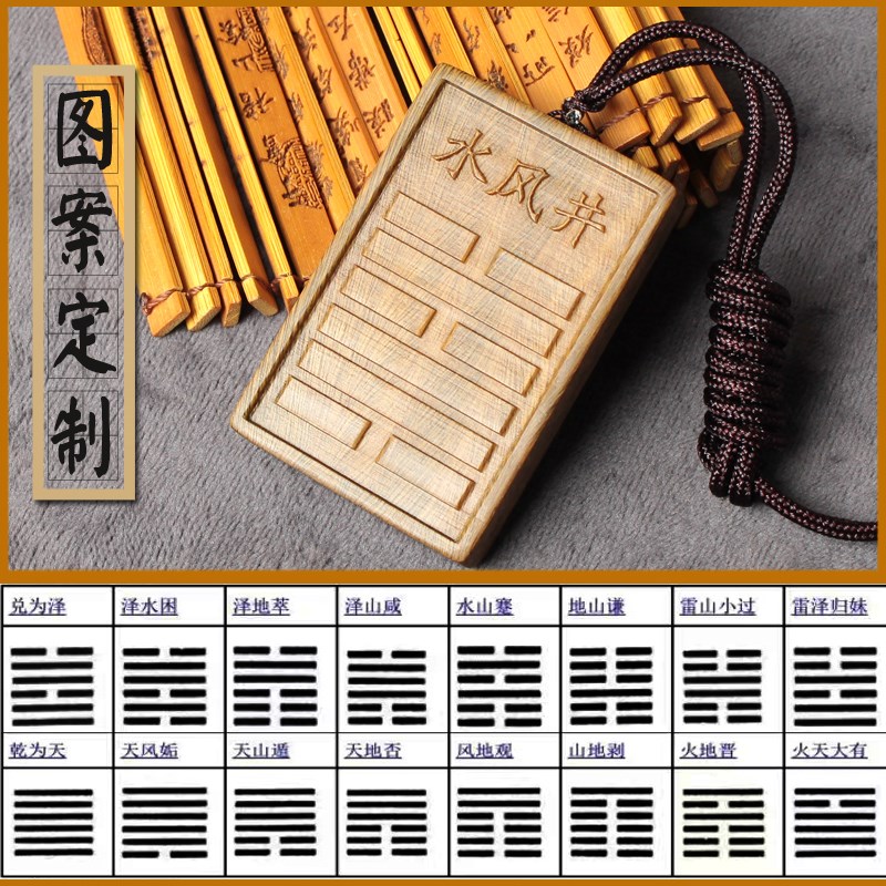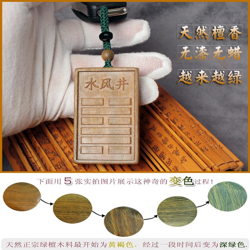 定做五行八卦补火离为火卦吊坠绿檀木制项链风雷益坎为水吊牌挂件