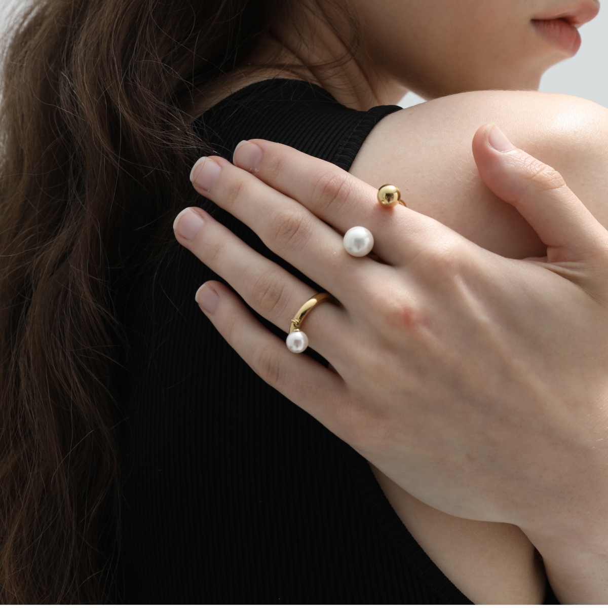 3 for evigt镀18K金白炽系列戒指 北欧设计师新款U形珍珠戒指