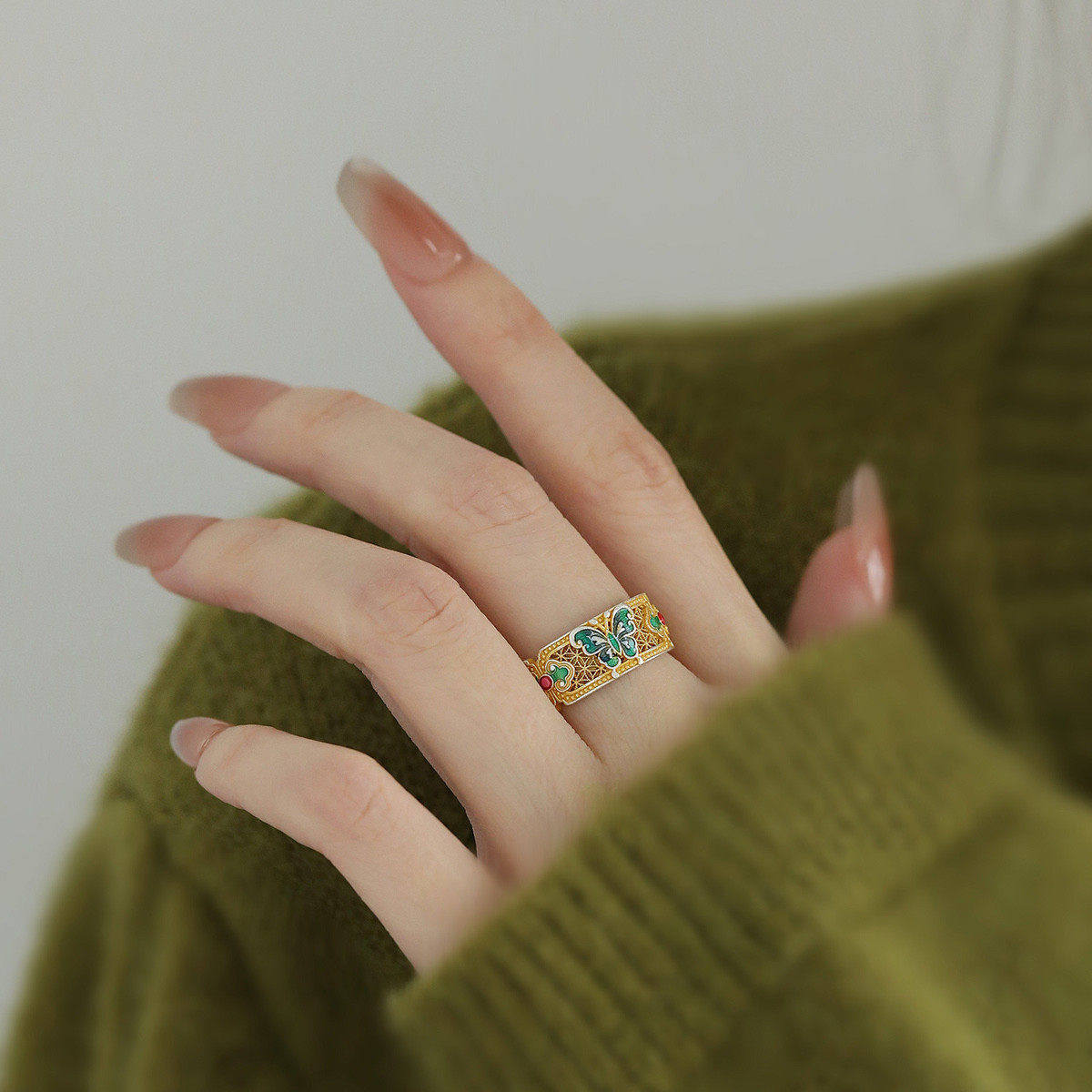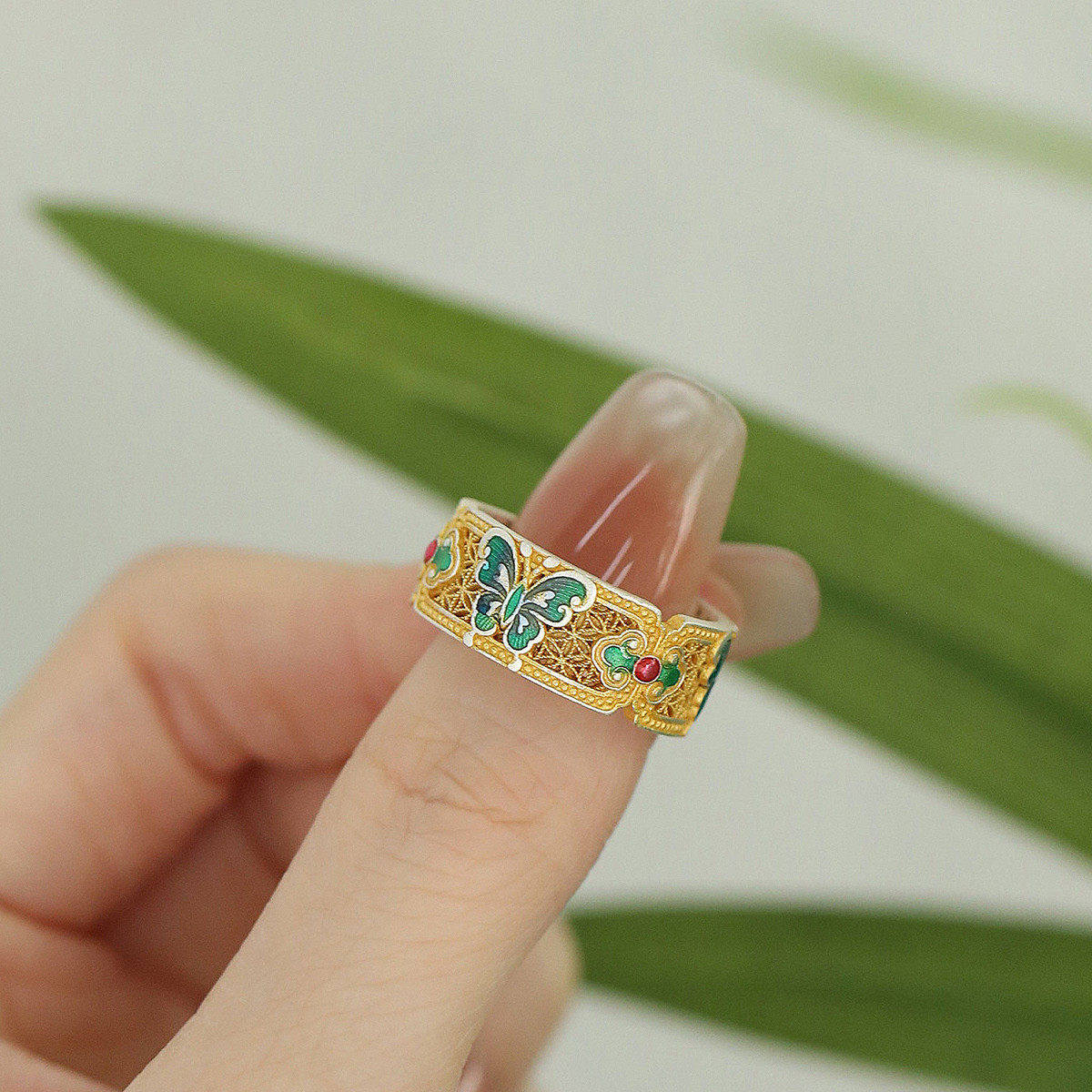 925银珐琅蝴蝶如意开口戒指女轻奢小众新中式高级感文艺百搭指环