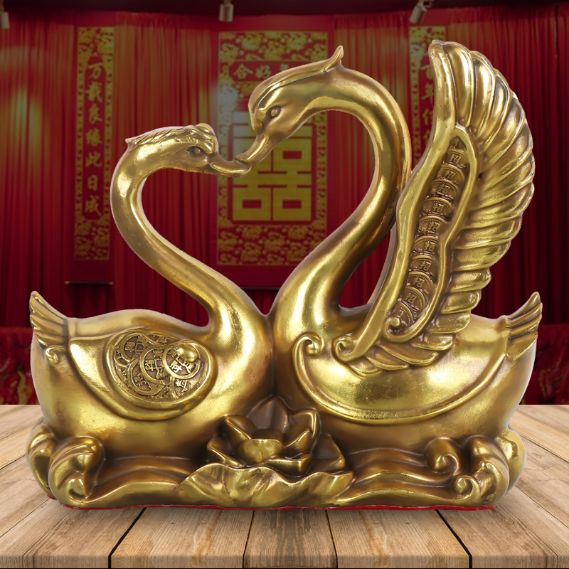 铜鸳鸯摆件一对纯铜鸳鸯戏水工艺品卧室床头装饰结婚礼物新婚送礼