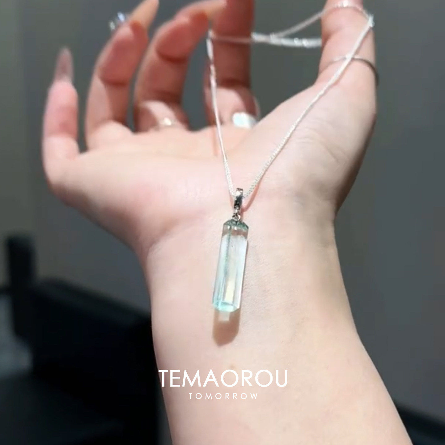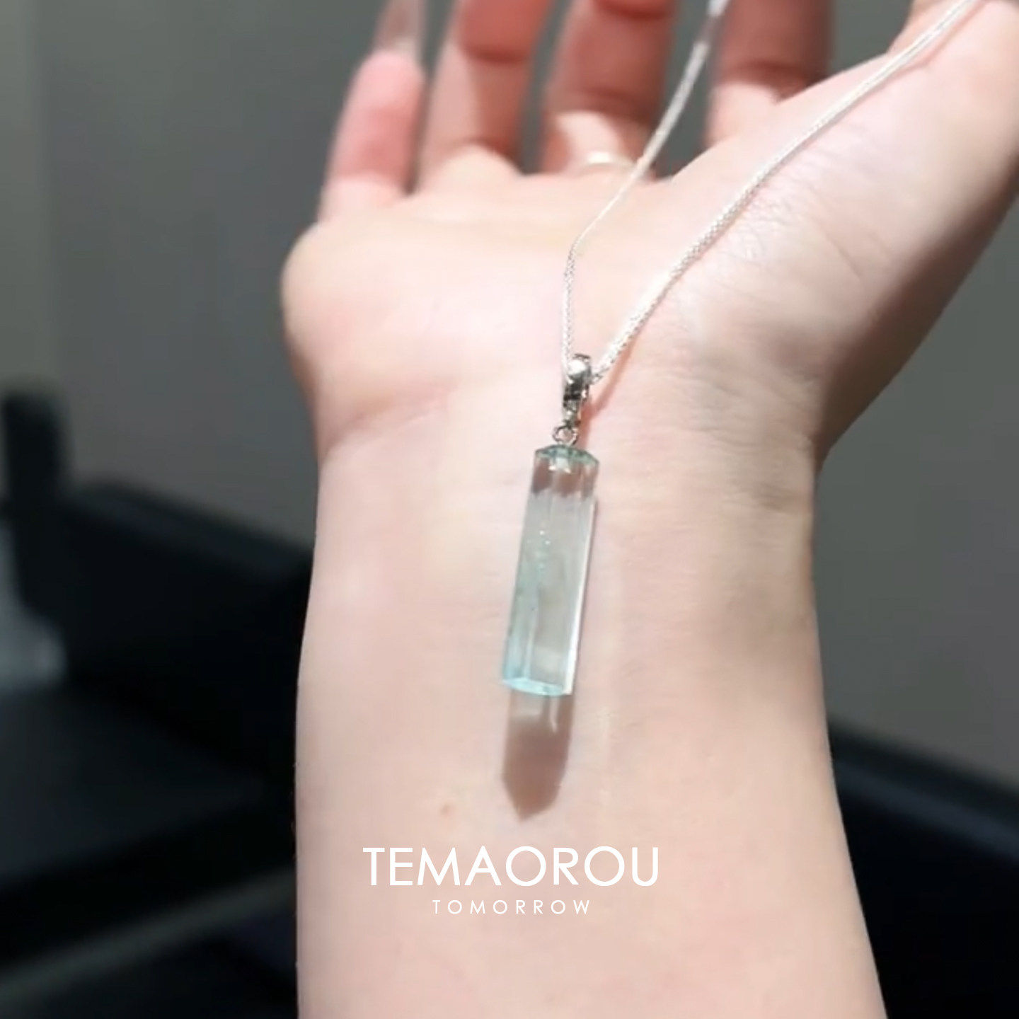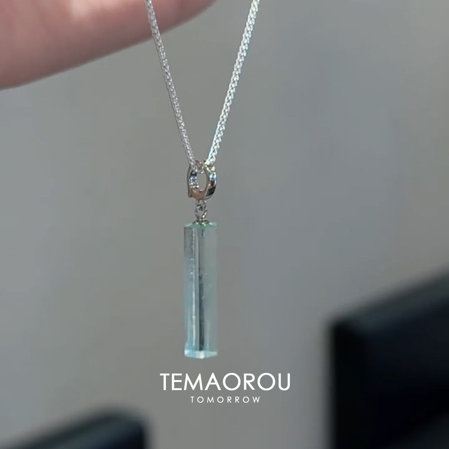 清冷感冰蓝色仿水晶吊坠项链女精致百搭时尚小众高级感锁骨链配饰