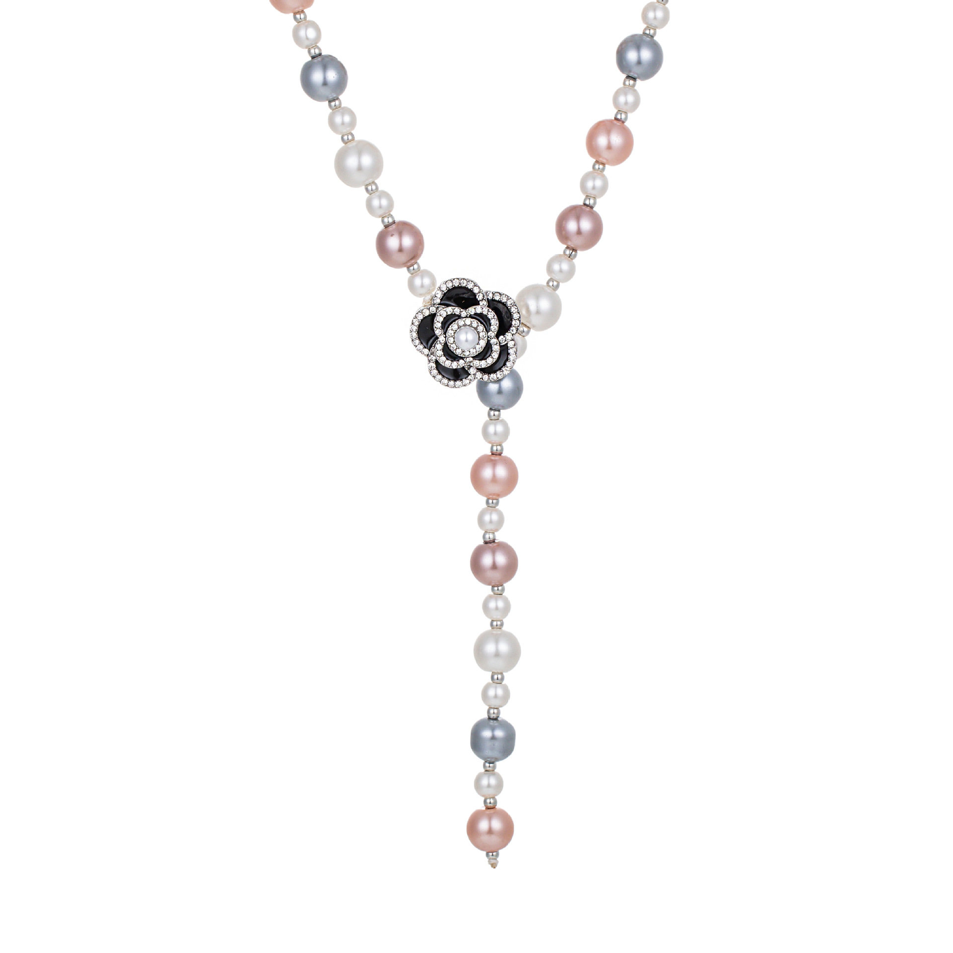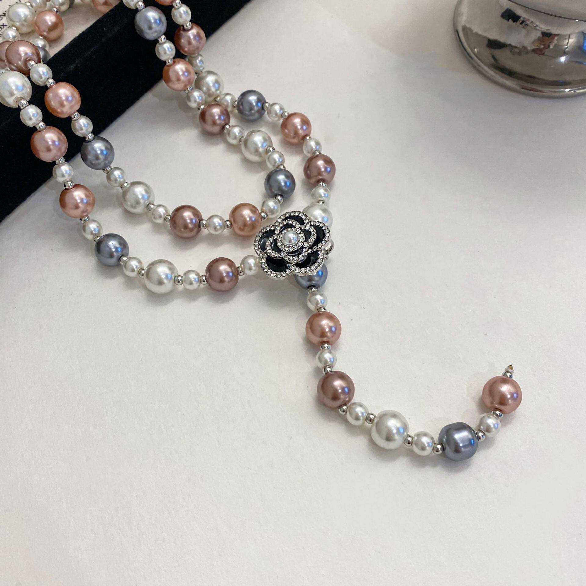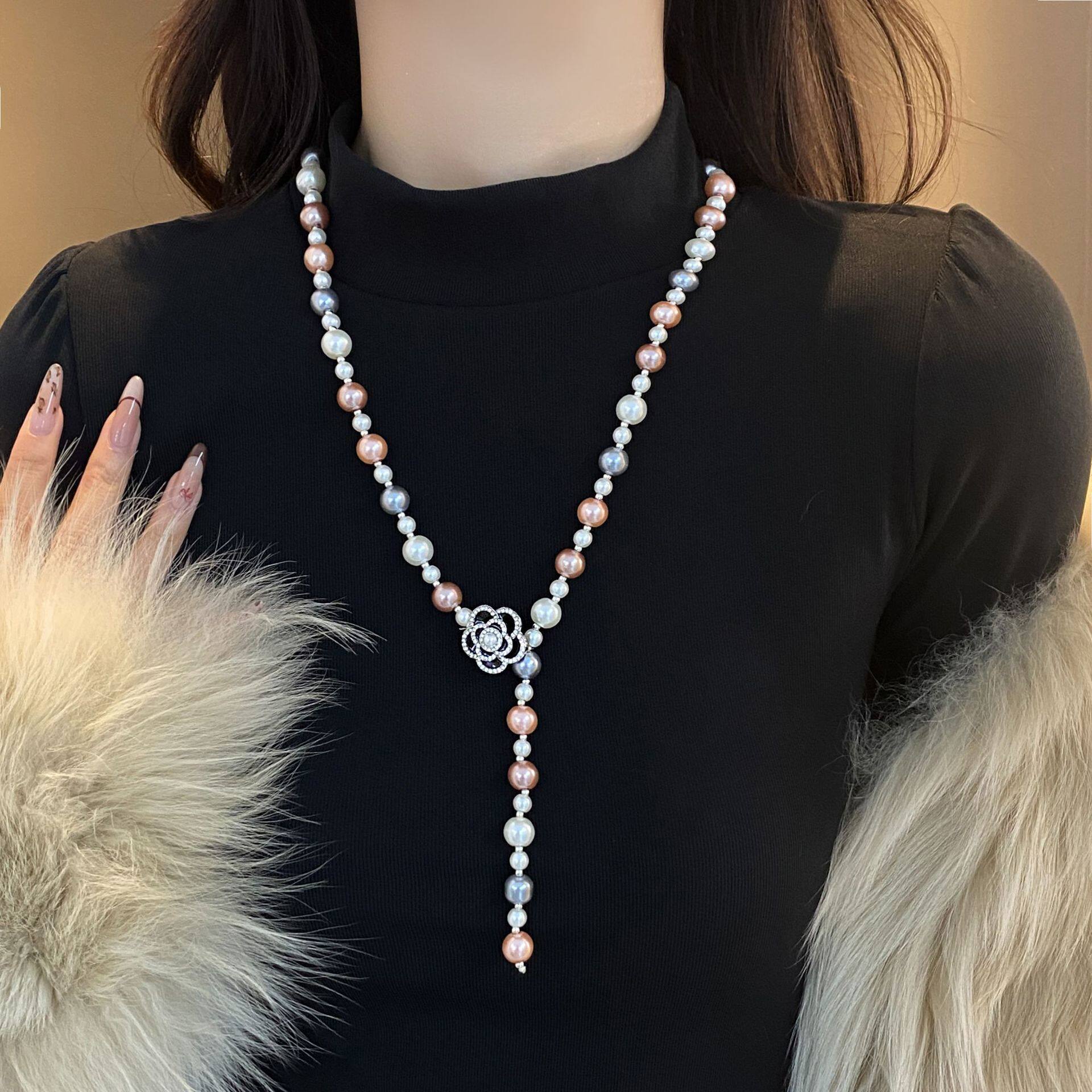 彩白色水滴珍珠项链女长款秋冬百搭花朵毛衣链气质轻奢高级感挂件