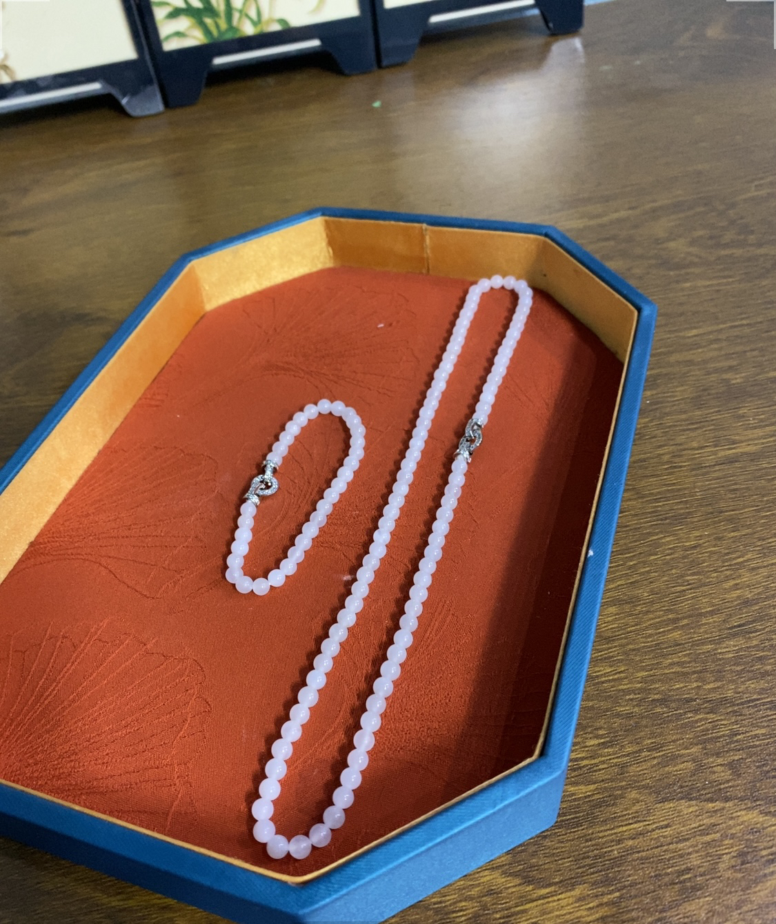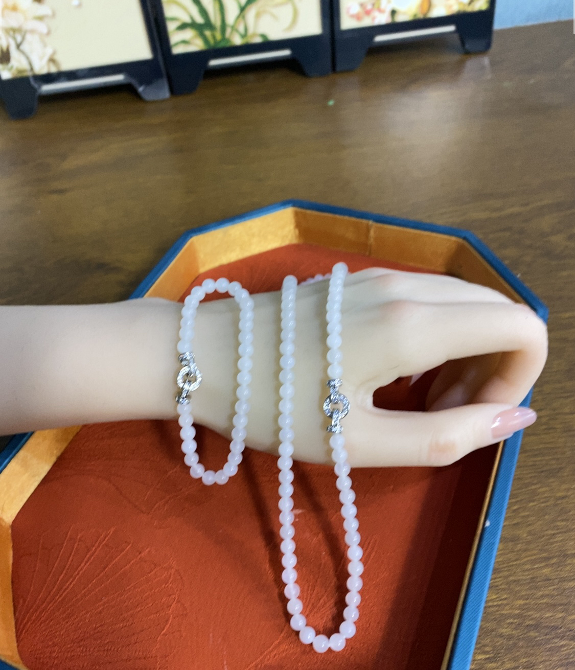 新疆直发正品和田玉羊脂白玉项链手链两件套女款天然玉石带证书