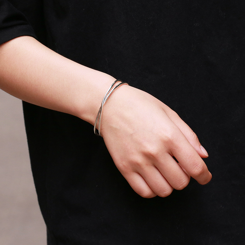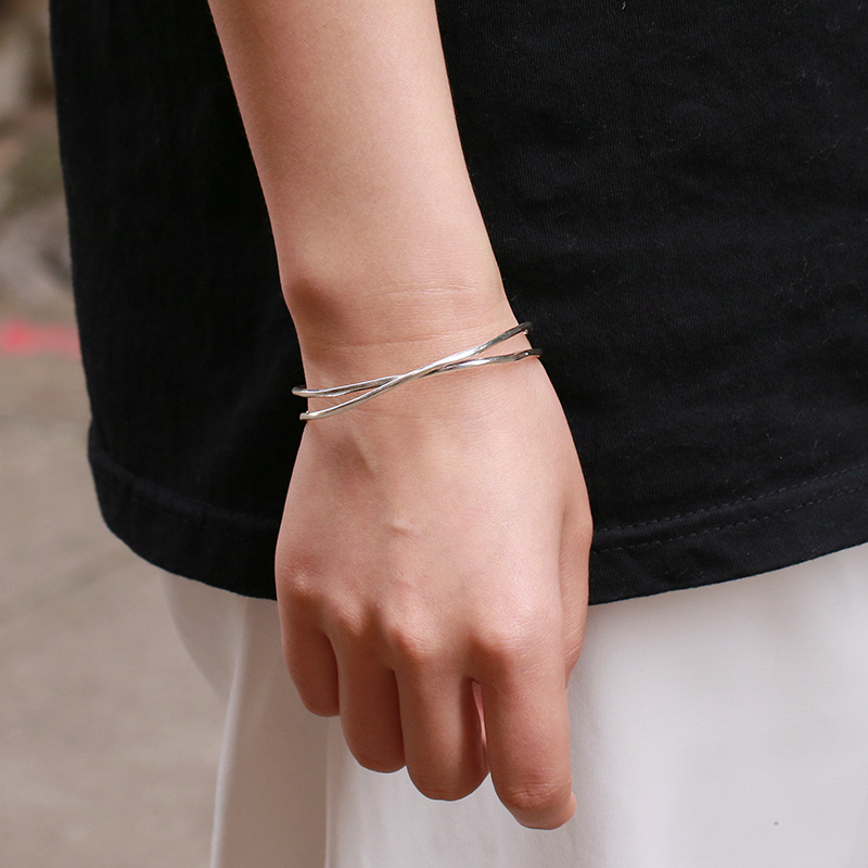 牛钝精工werkstatt munchen简约百搭锤击交叉锤纹手环925纯银手镯