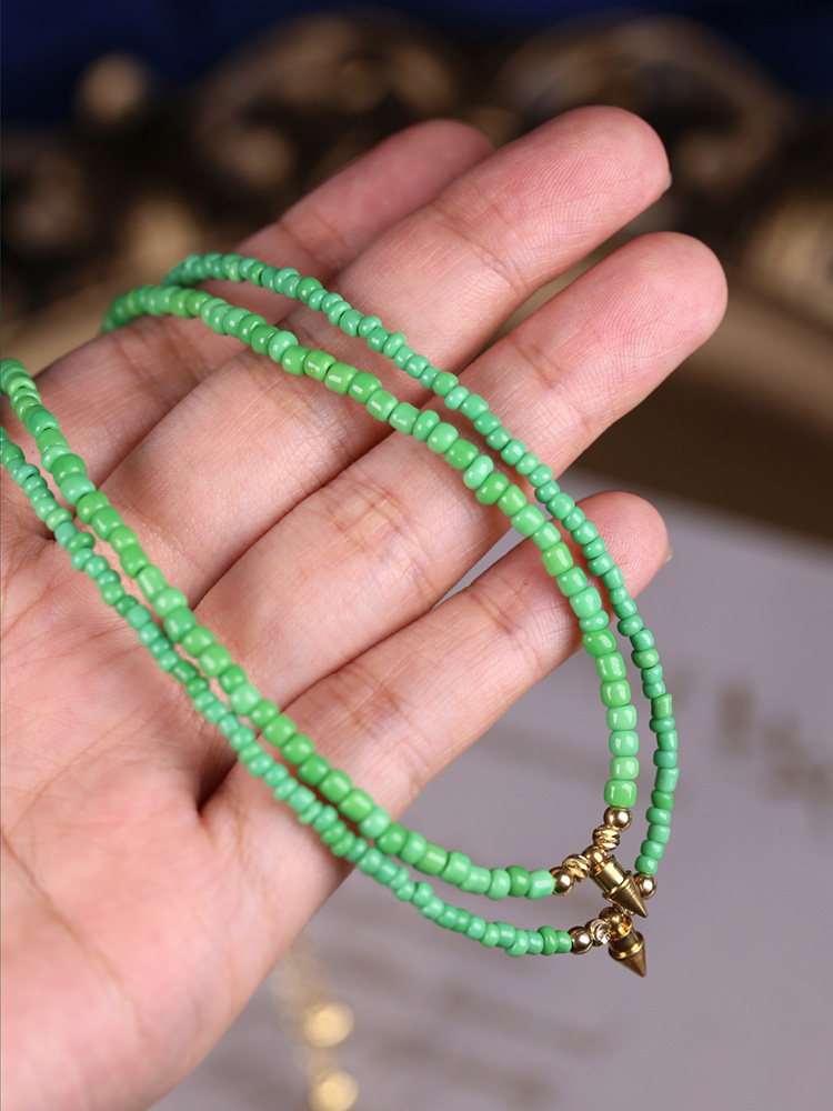 定做周雨彤同款复古绿色米珠琉璃珠项链锁骨链 个性choker短项链