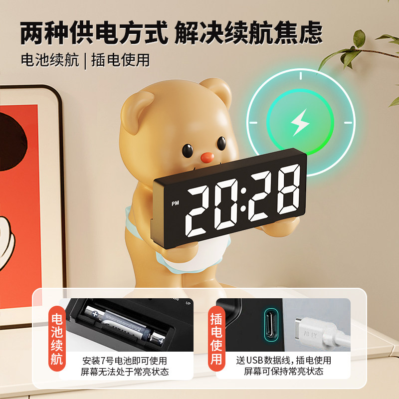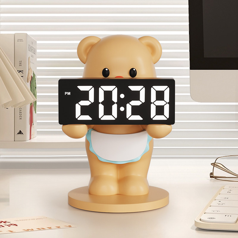 黄油小熊电子时钟摆台式创意床头台灯小夜灯桌面装饰摆件生日礼物