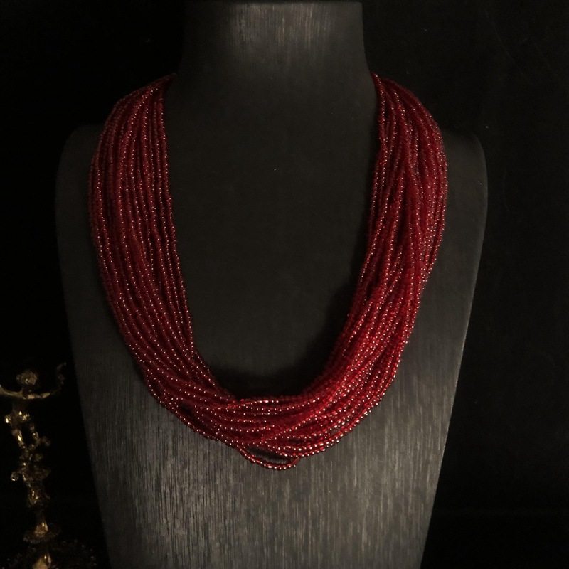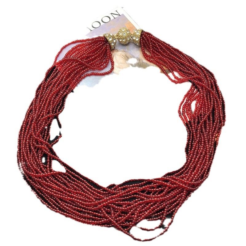 新款欧美风百搭项链红色热销颈链中古多股米珠磁吸扣毛衣链全新OM