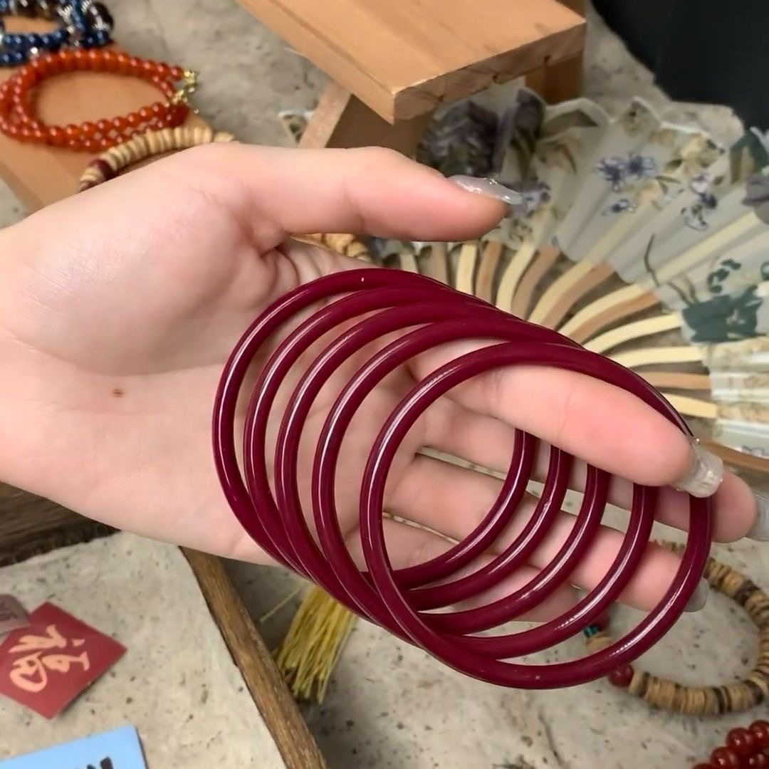 大圈口朱砂红色叮当镯小众转运不掉色手镯女生护身气质新中式女镯