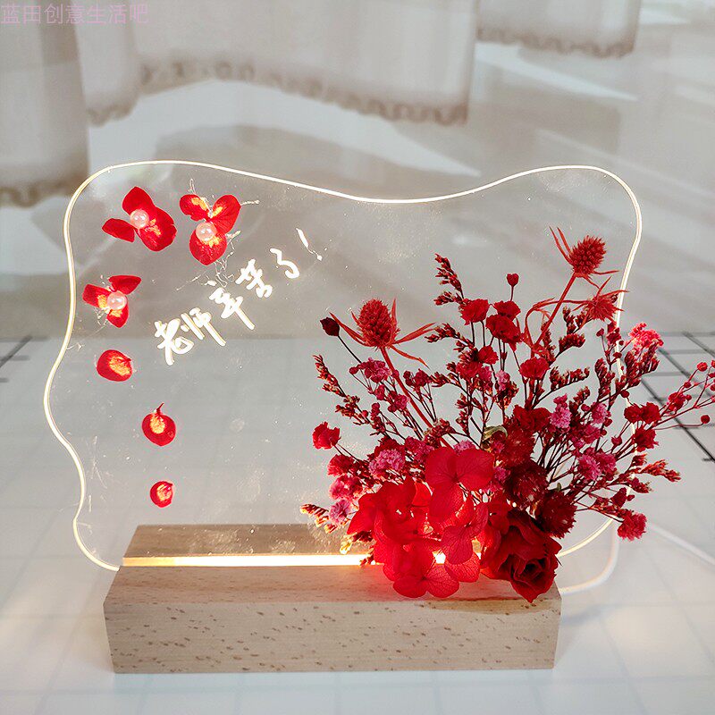 diy永生花小夜灯材料包透明创意发光留言板自制干燥花实木灯座摆