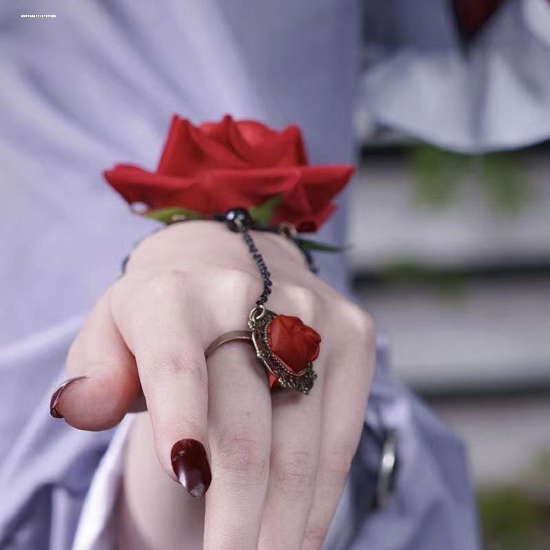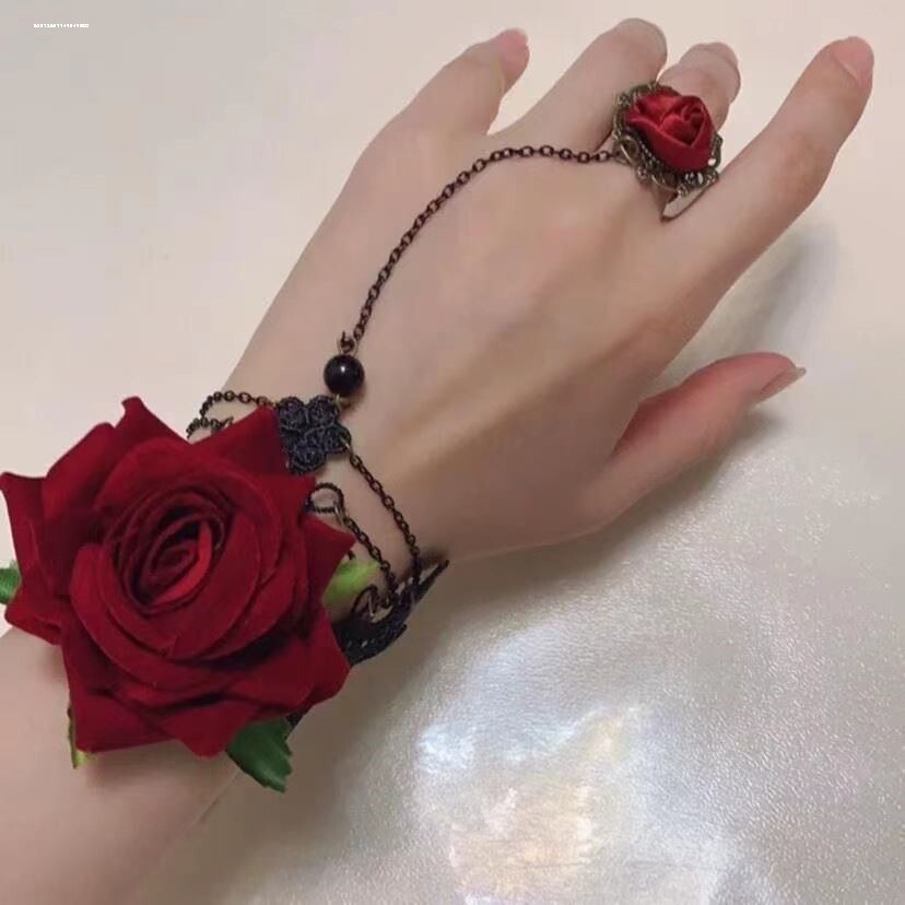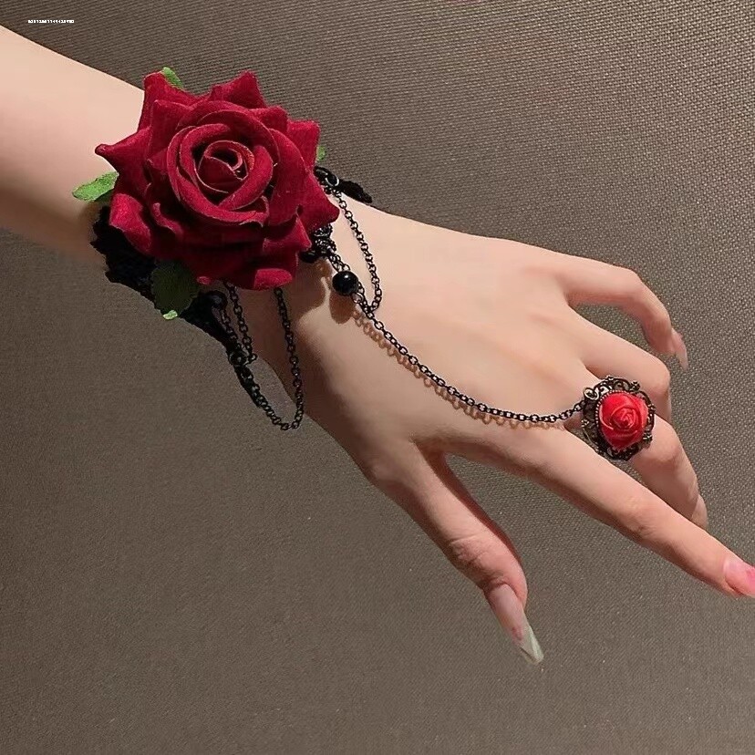 朋克风蕾丝手腕复古哥特配饰手链lolita手饰手套万圣节玫瑰花红色