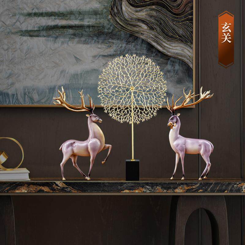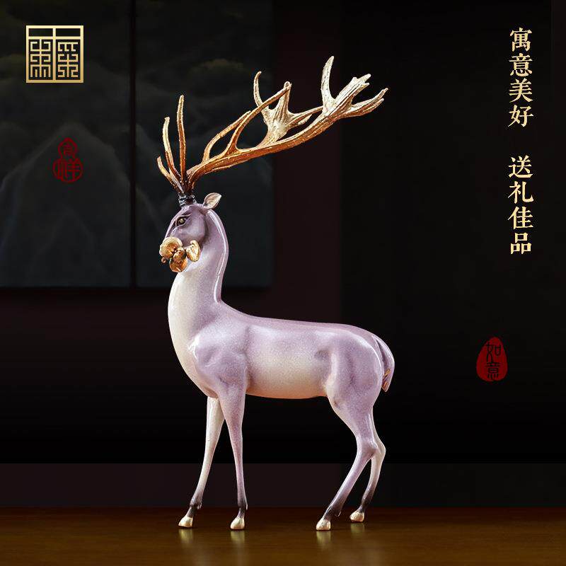 纯铜紫色招财福鹿摆件客厅玄关电视柜软装装饰轻奢礼品