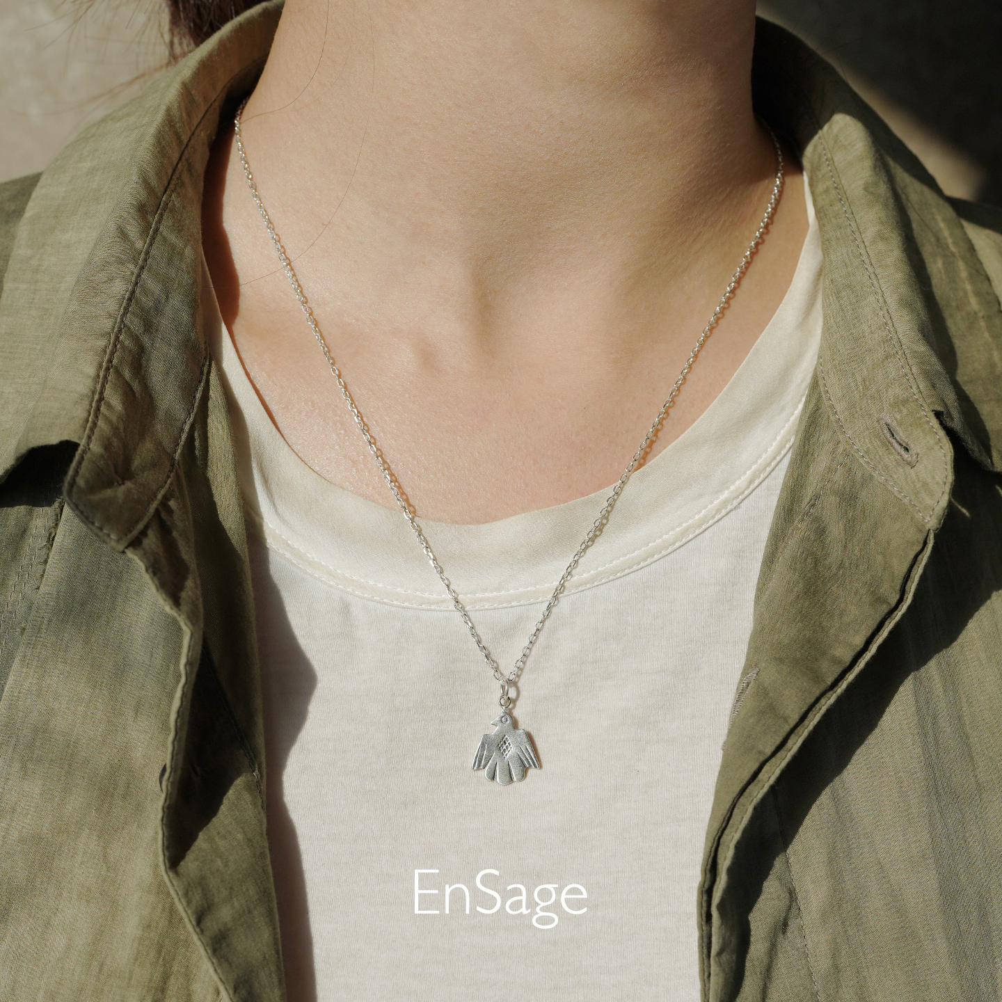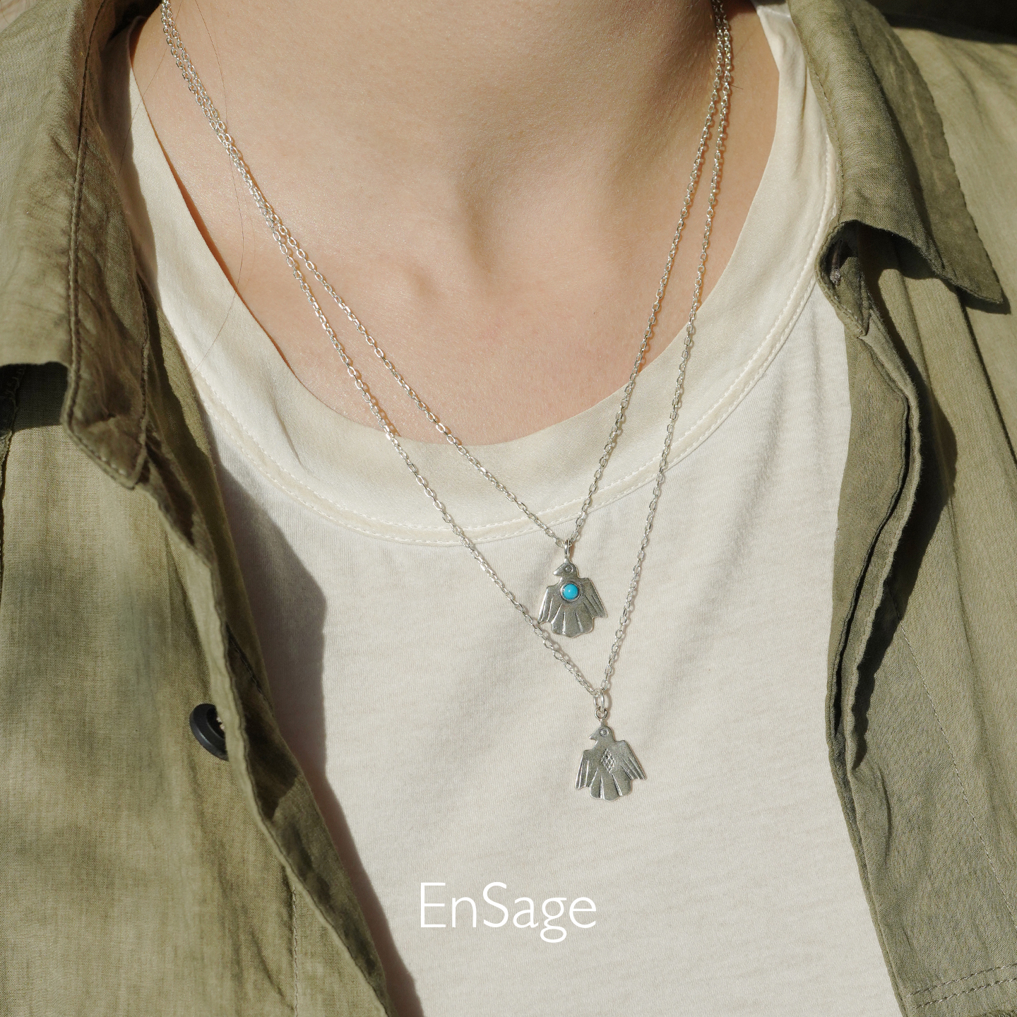 ENSAGE 游牧雷灵项链 纯银绿松石原创设计师小鸟吊坠锁骨链 默叙