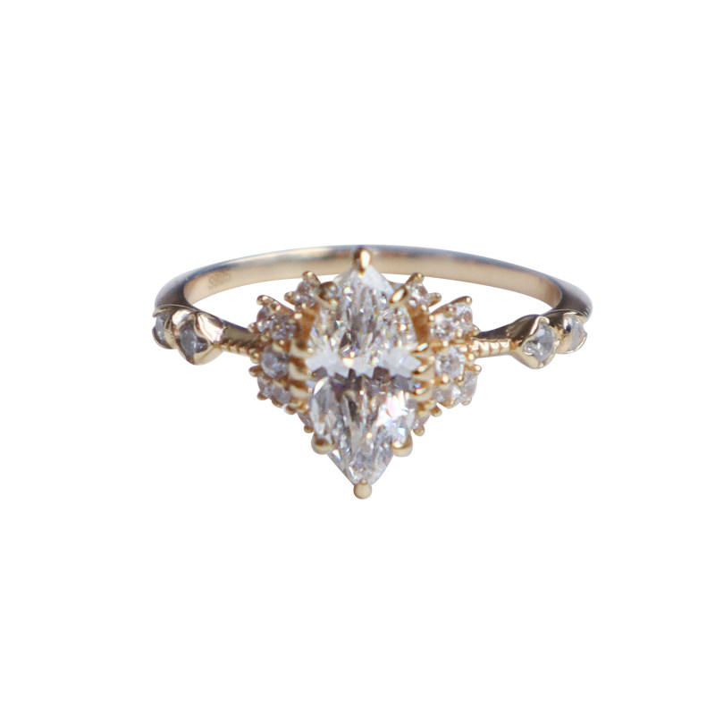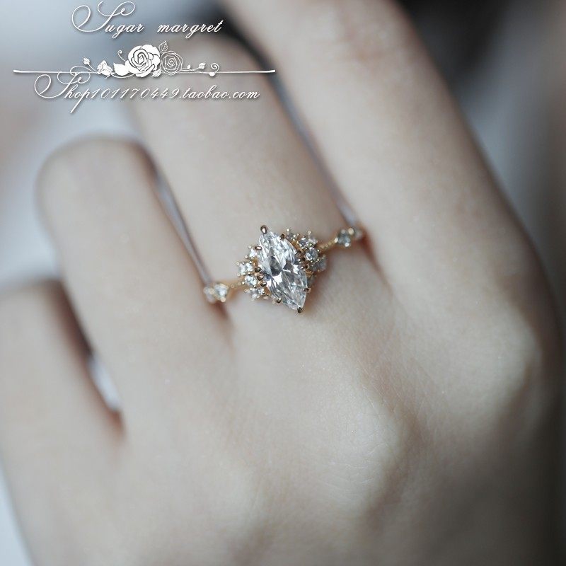 婚礼进行曲 梦中婚戒2.0 奢华版马眼高品质钻色高碳钻925纯银戒指