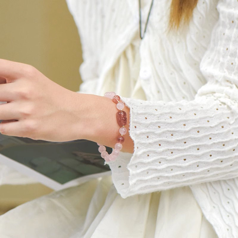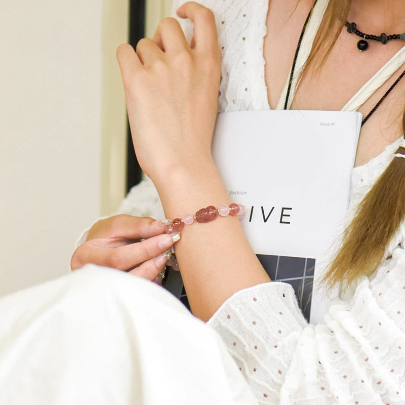 2023夏季天然粉水晶手链女可爱草莓晶貔貅手串饰品ins女生日礼物