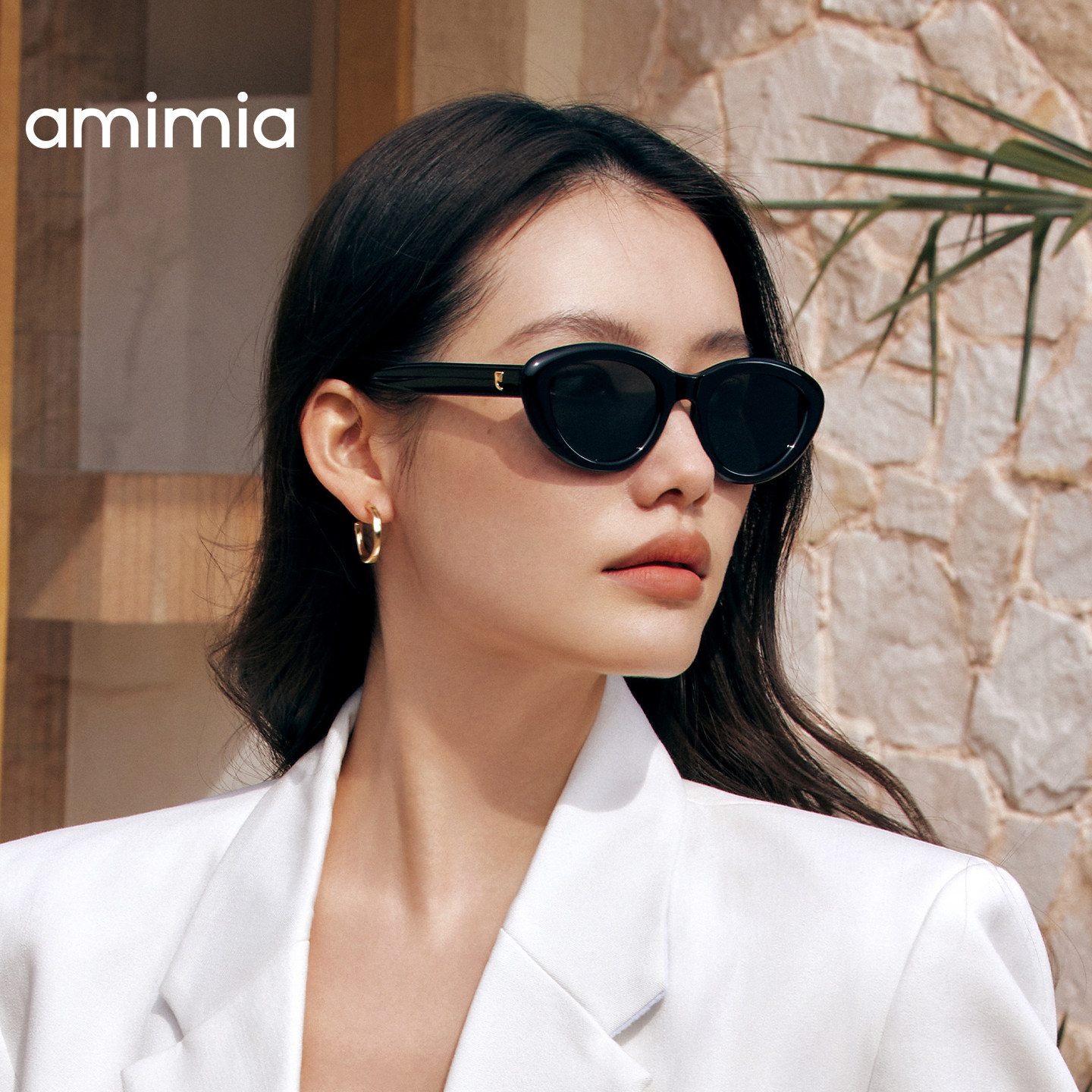 amimia·LIPS复古猫眼方圆脸墨镜女防紫外线偏光太阳眼镜欧美新款