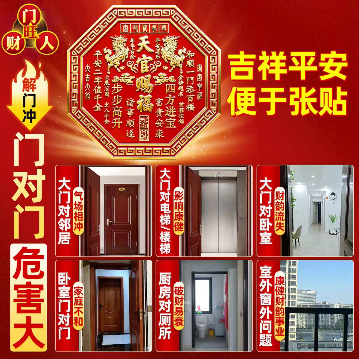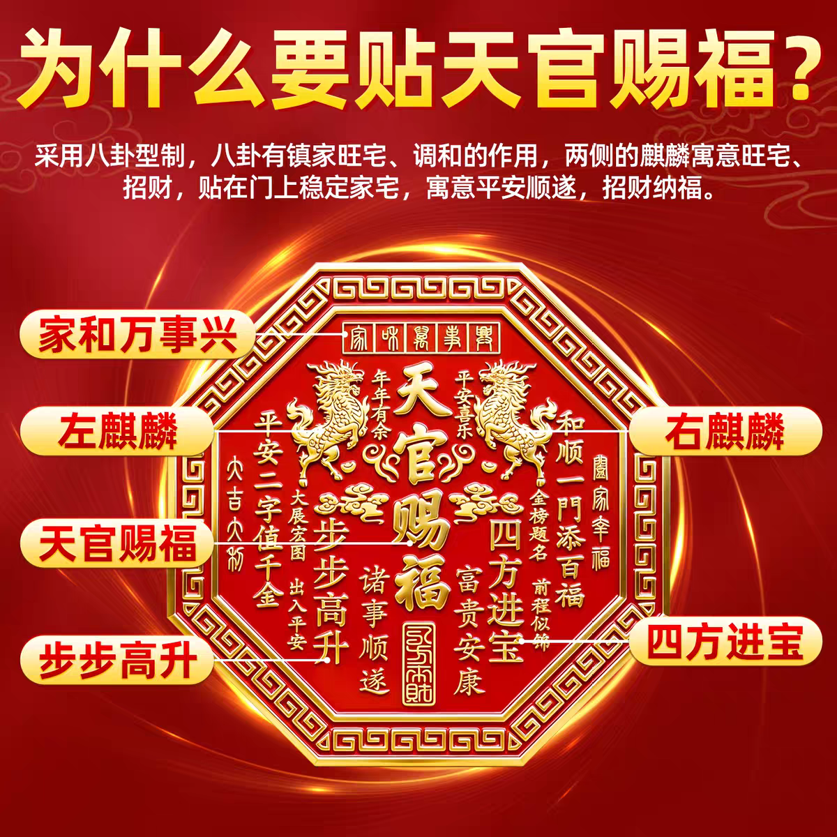 天官赐福门贴2026新款正品解决入户门对大门邻居金属麒麟浮雕门牌