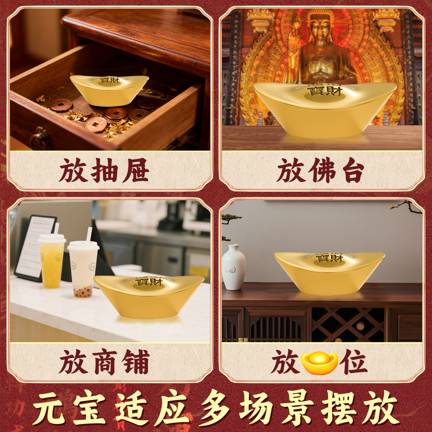 金元宝招财摆件大号实心黄铜元宝摆件沙金元宝聚宝盆招聚财百福缸