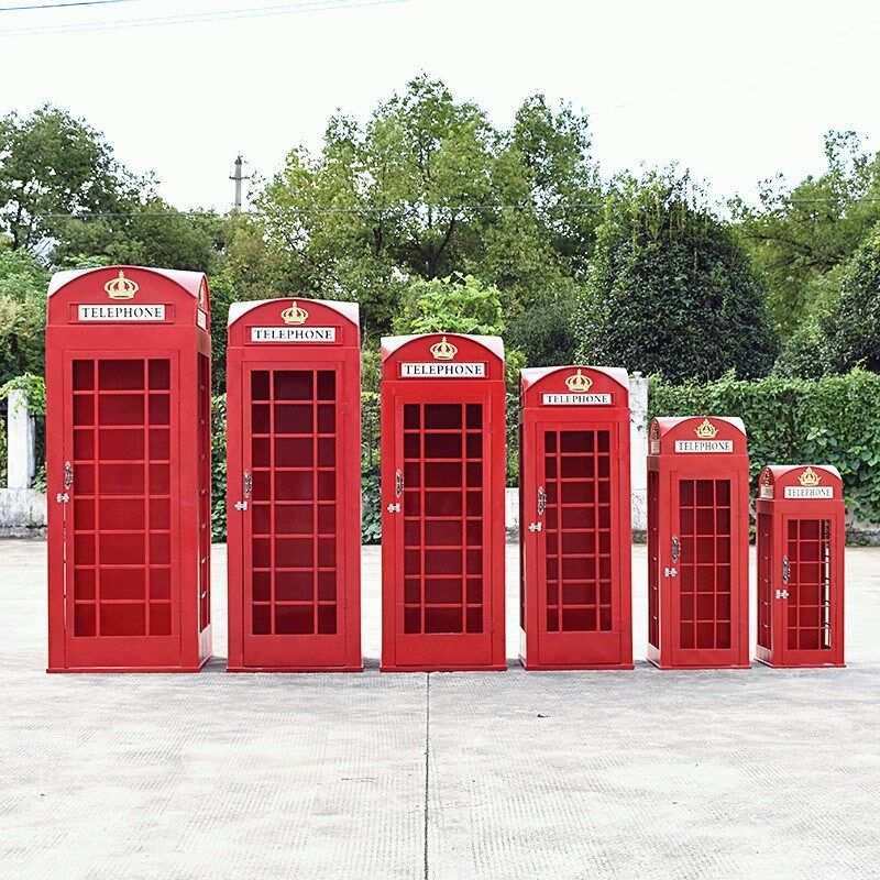 复古红色电话亭套装组合大型移动铁艺美陈软装邮筒路牌公园椅亭子