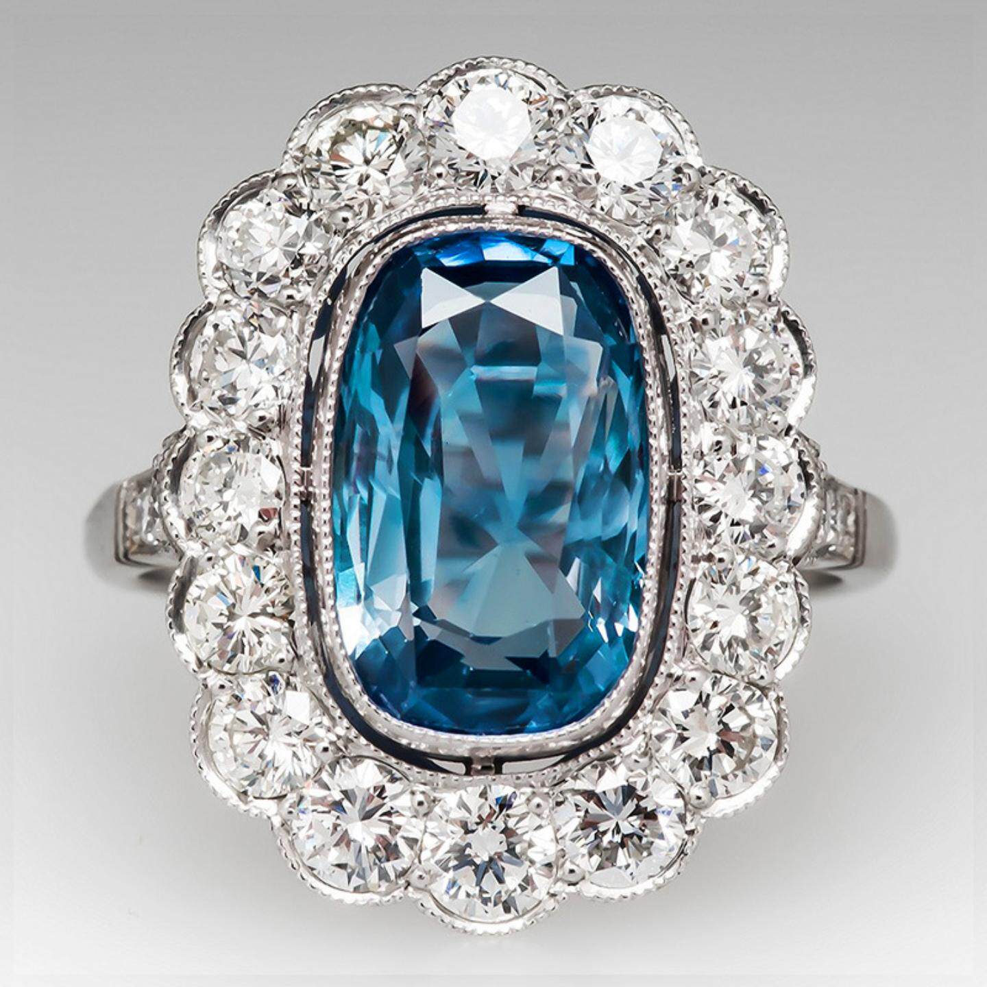 轻奢高档奢华彩宝戒指 镶嵌海蓝色锆石女式指环 周年庆典晚宴手饰
