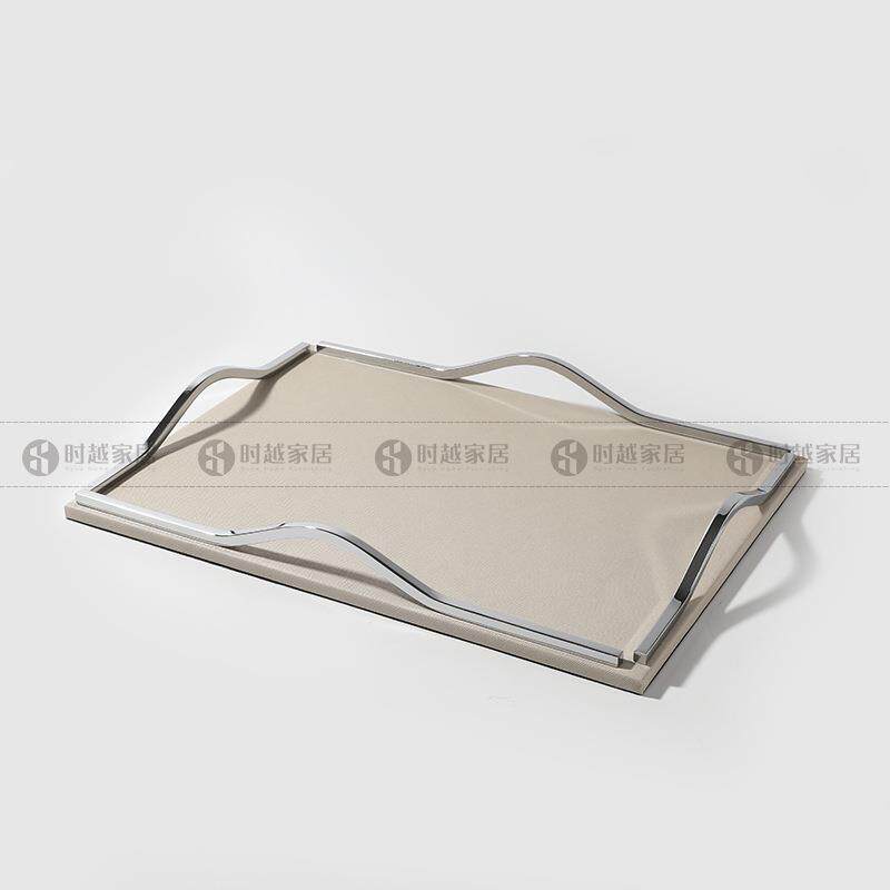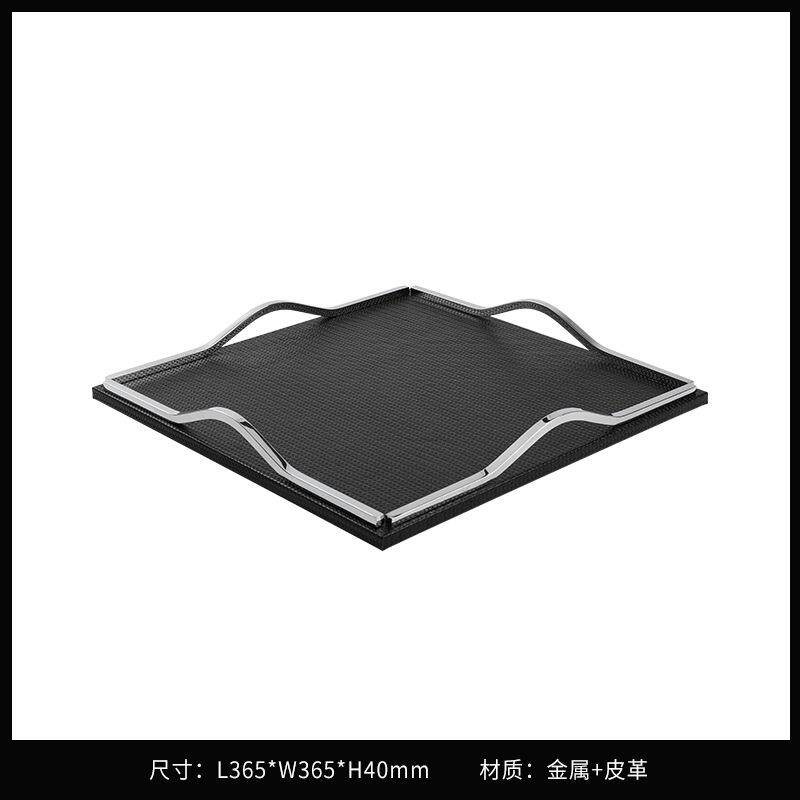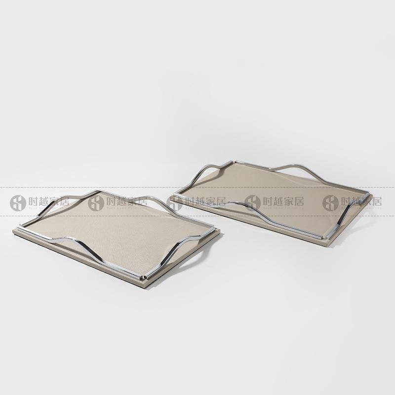现代简约灰色皮革托盘摆件家居客厅茶几样板间售楼处软装饰品摆设