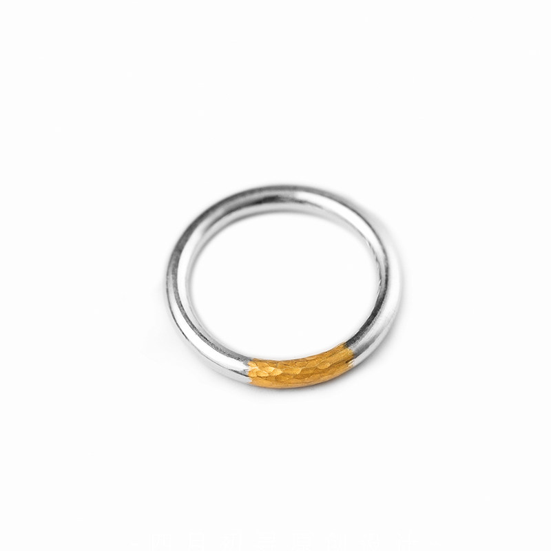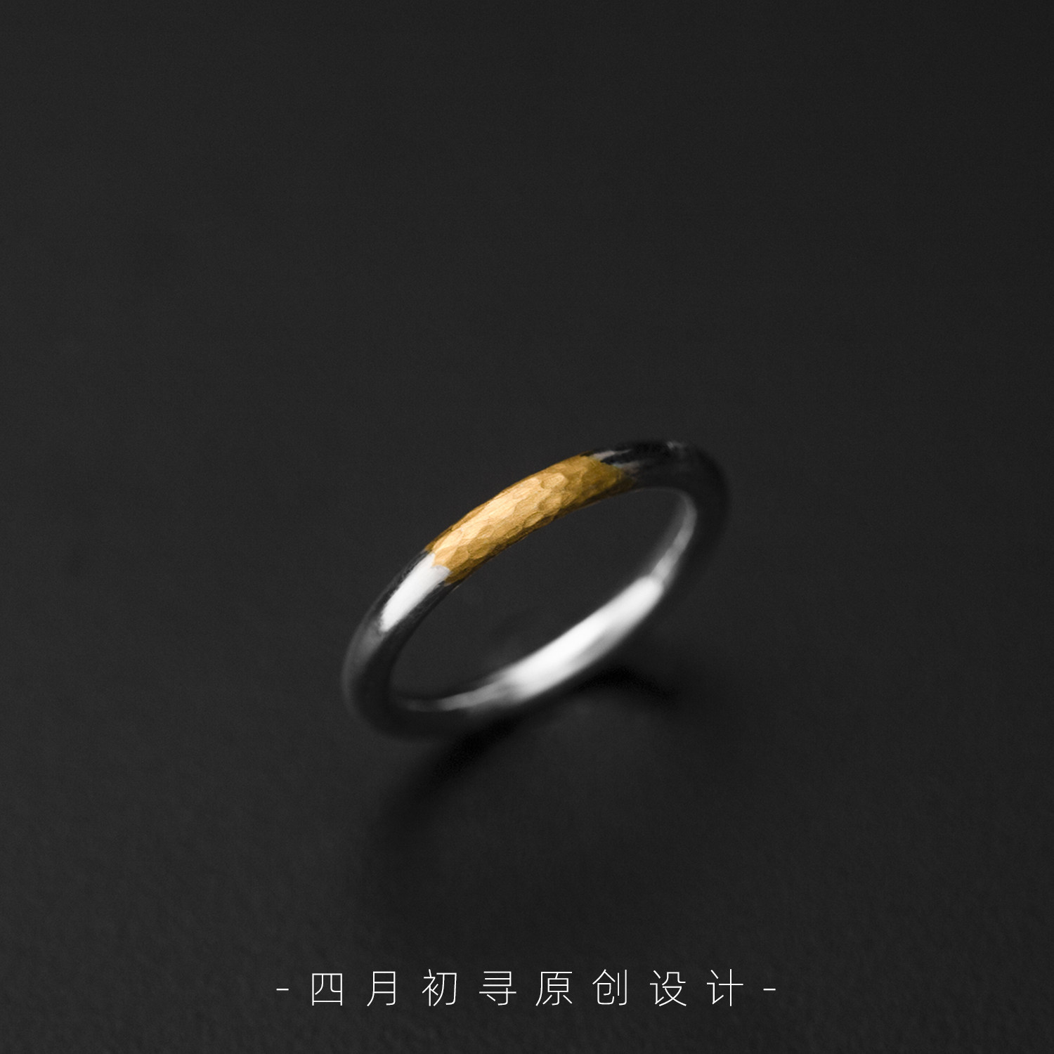 纯银情侣对戒黄金男戒古法磨砂拇指圈尾戒原创简约闭口小指女戒指