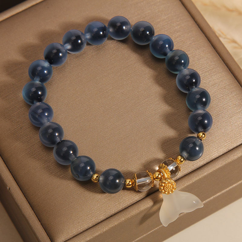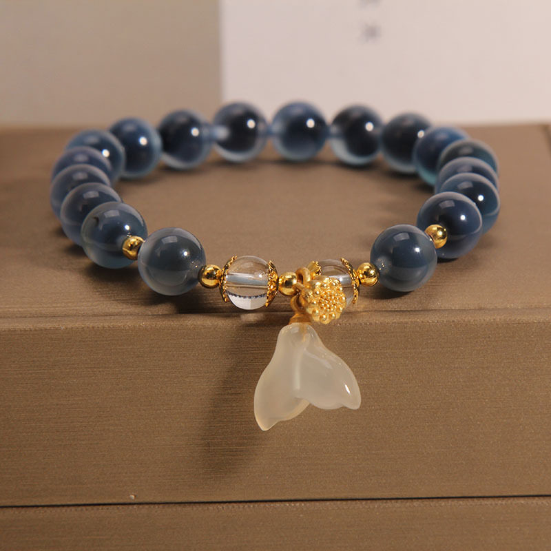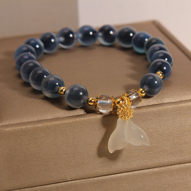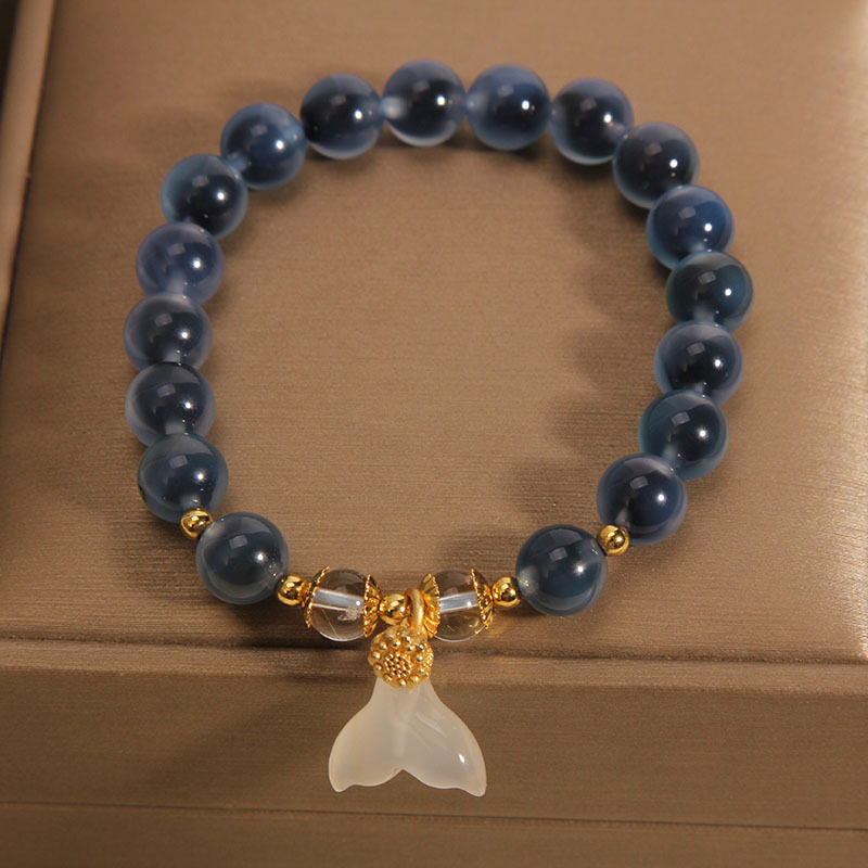 糖心蓝色玛瑙手链女小众复古感鱼尾吊坠手串精致闺蜜礼物