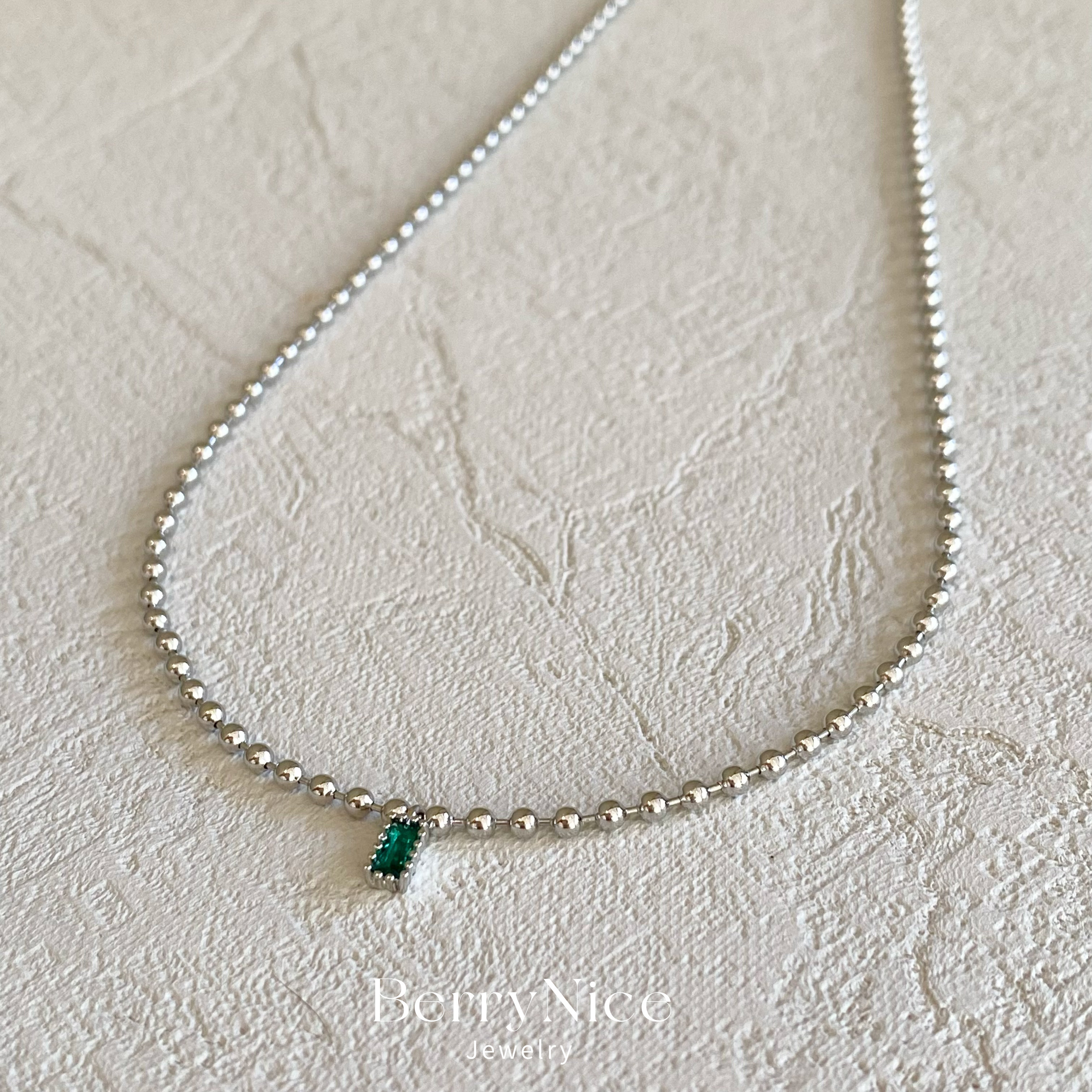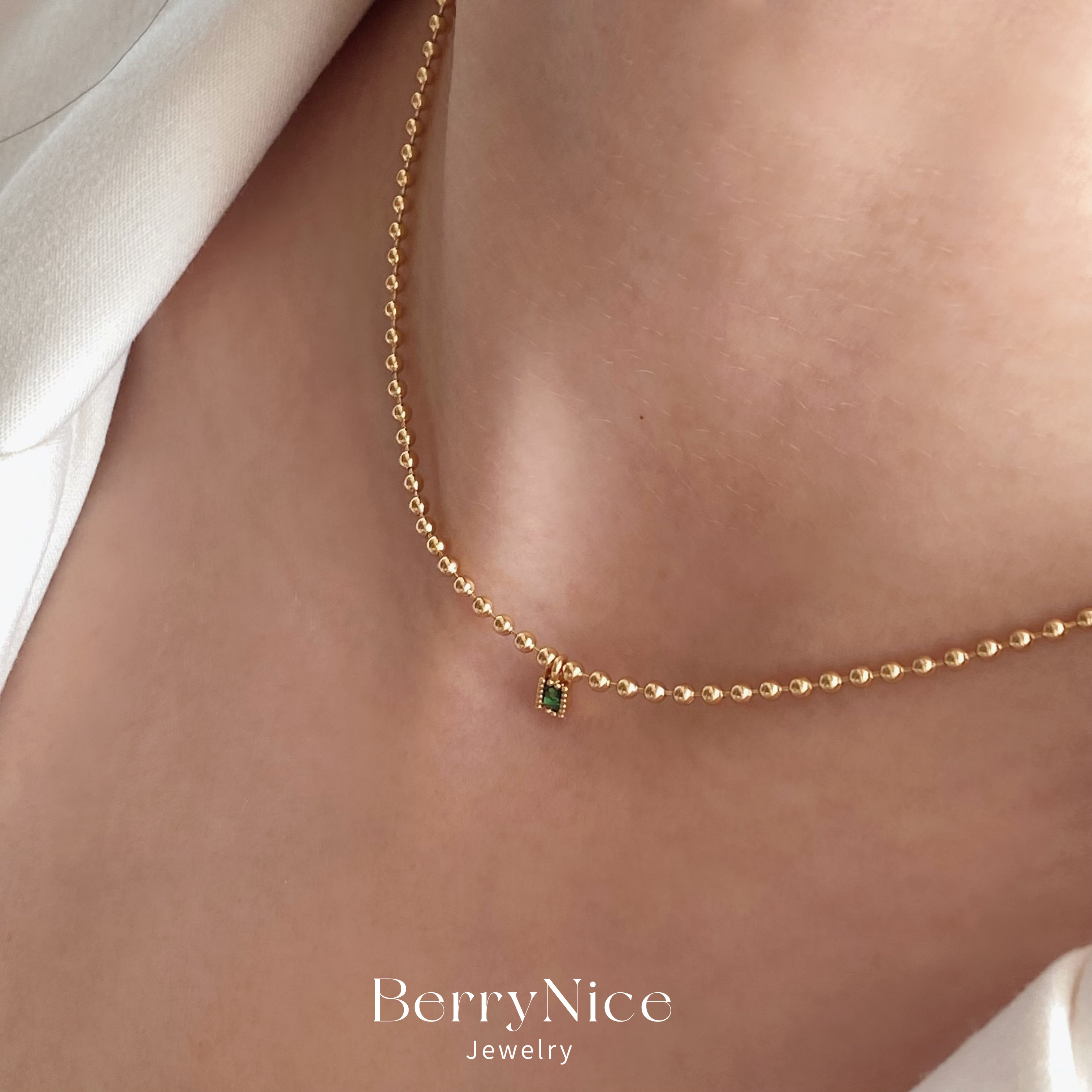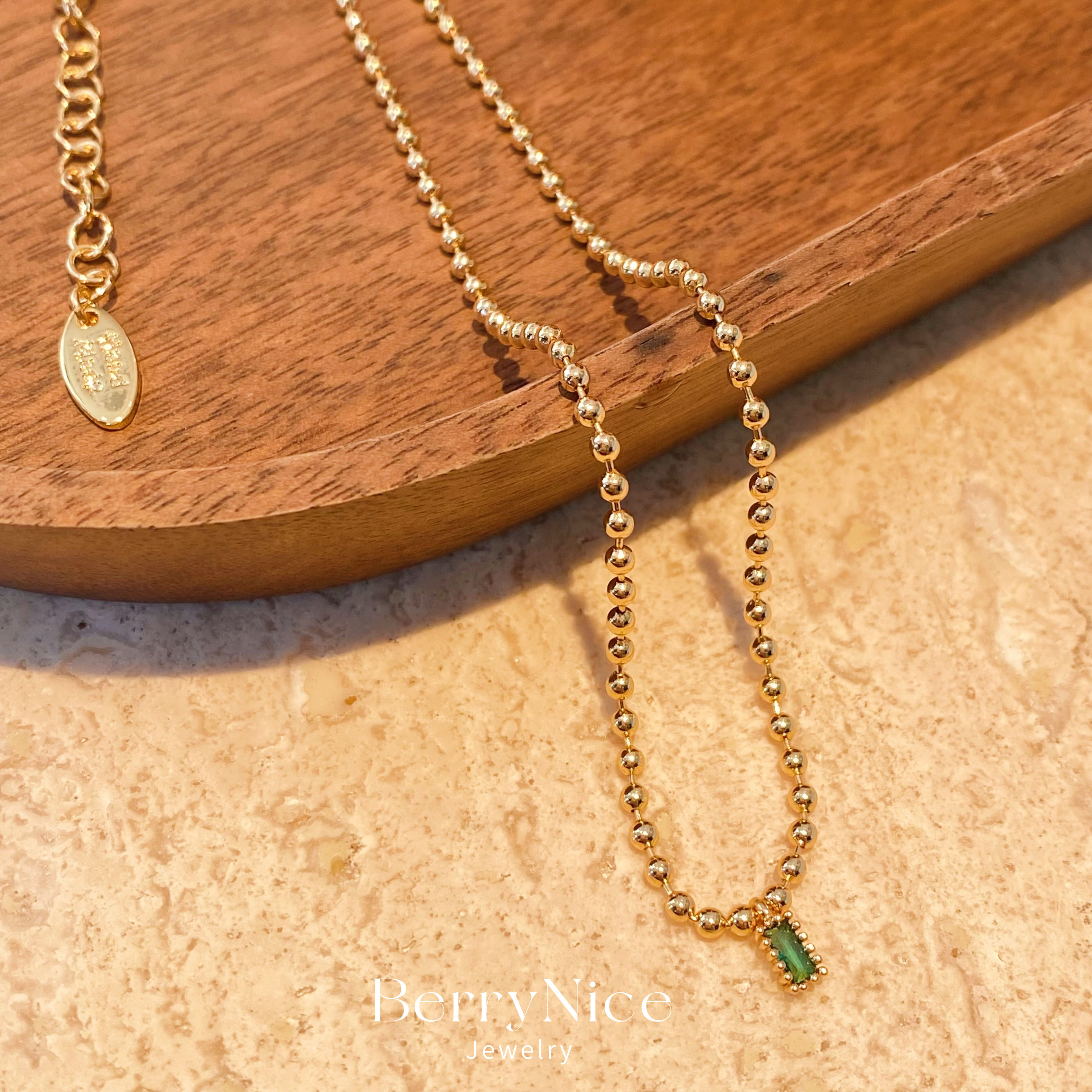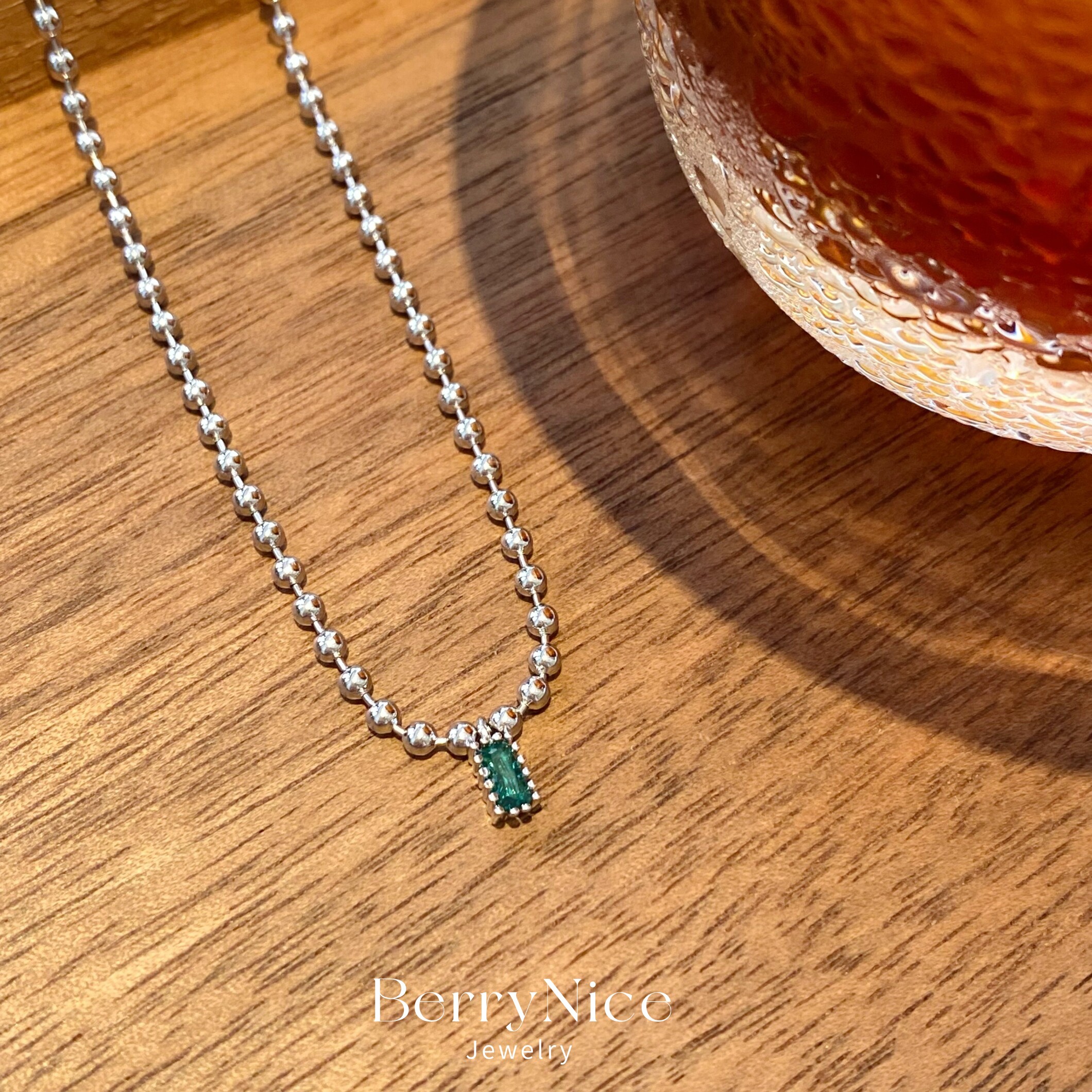 原创祖母绿镶嵌钻石18K金小方钻项链锁骨链夏显白设计感ins毛衣链