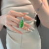 高冰玉髓小福豆纯银吊坠单坠阳绿四季豆玉石玛瑙镶嵌绿色项链女款