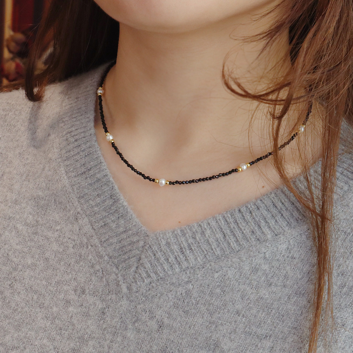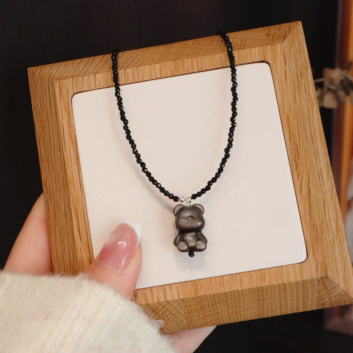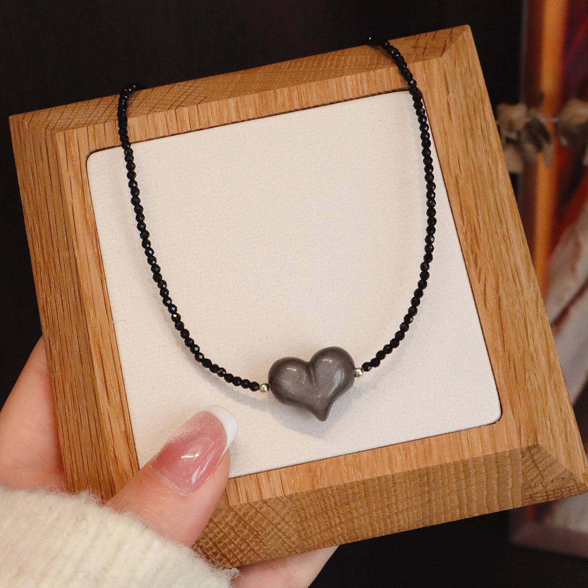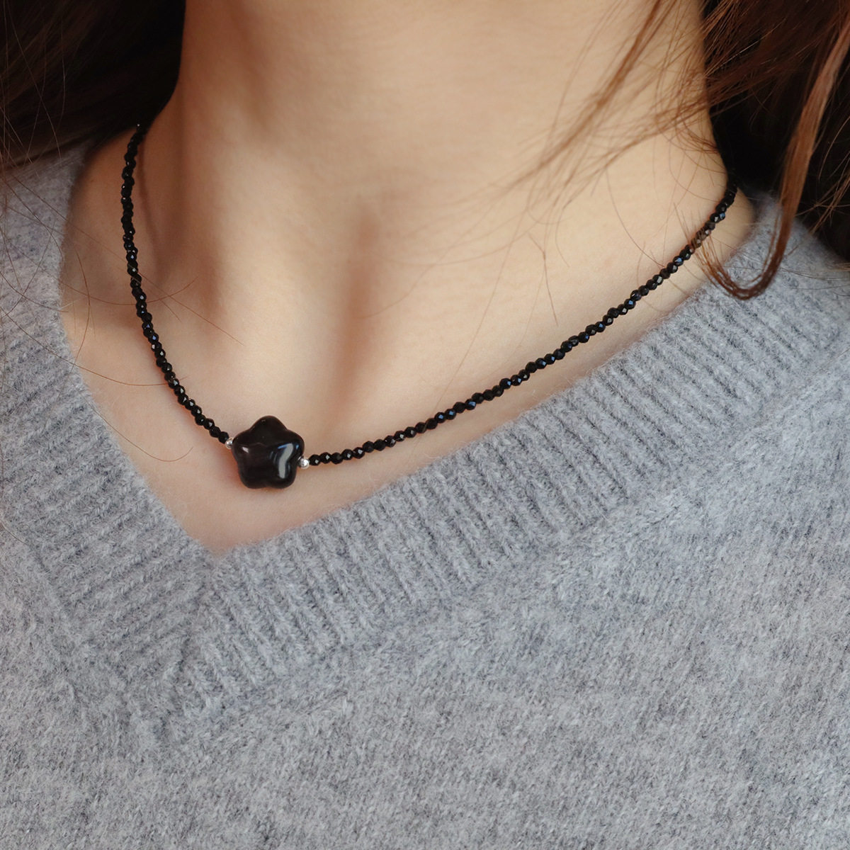 天然黑色尖晶石项链女百搭天然黑曜石春夏吊坠高级感锁骨链项链