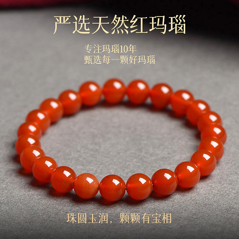 天然红玛瑙手串女玉髓玉石散珠红色水晶手链男串珠本命年玉转运珠