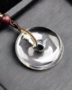 8A级白水晶平安扣吊坠冰种白水晶护身小挂件白色透明原石项链男女