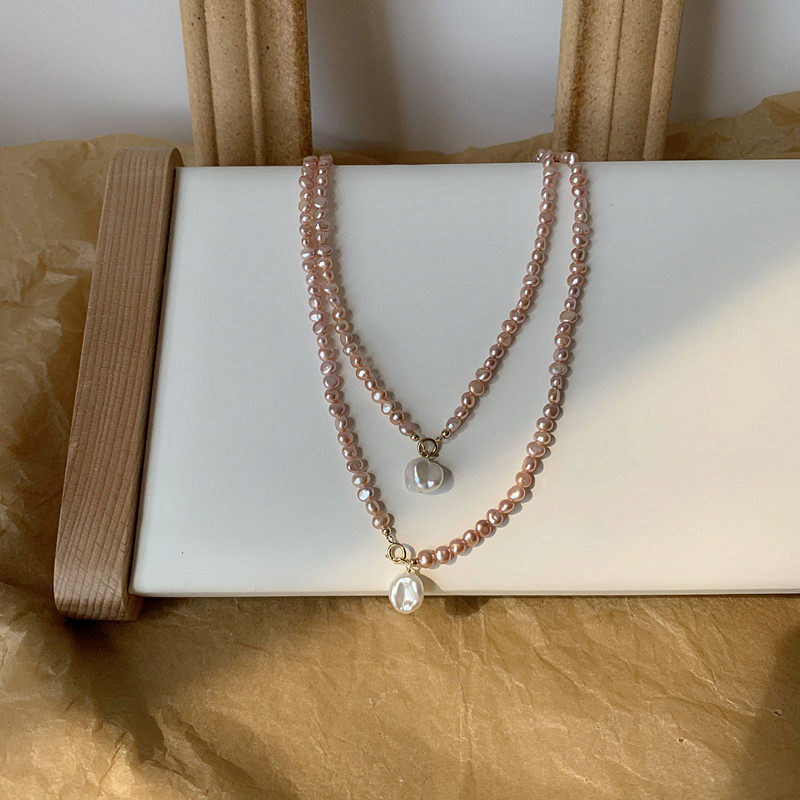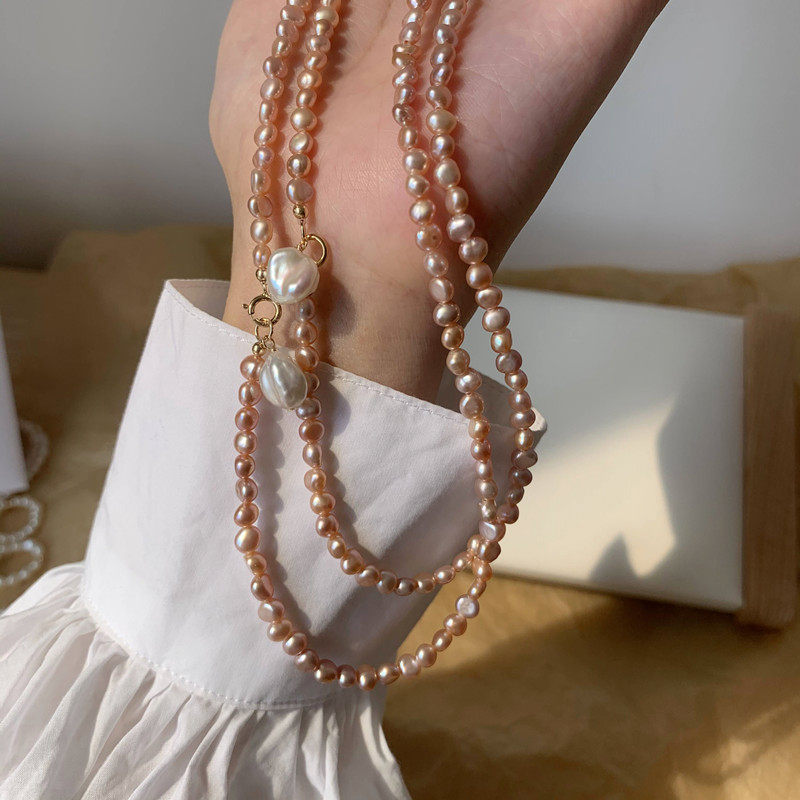 原创紫色天然巴洛克珍珠锁骨链 美国14k包金小众设计秋冬毛衣链女